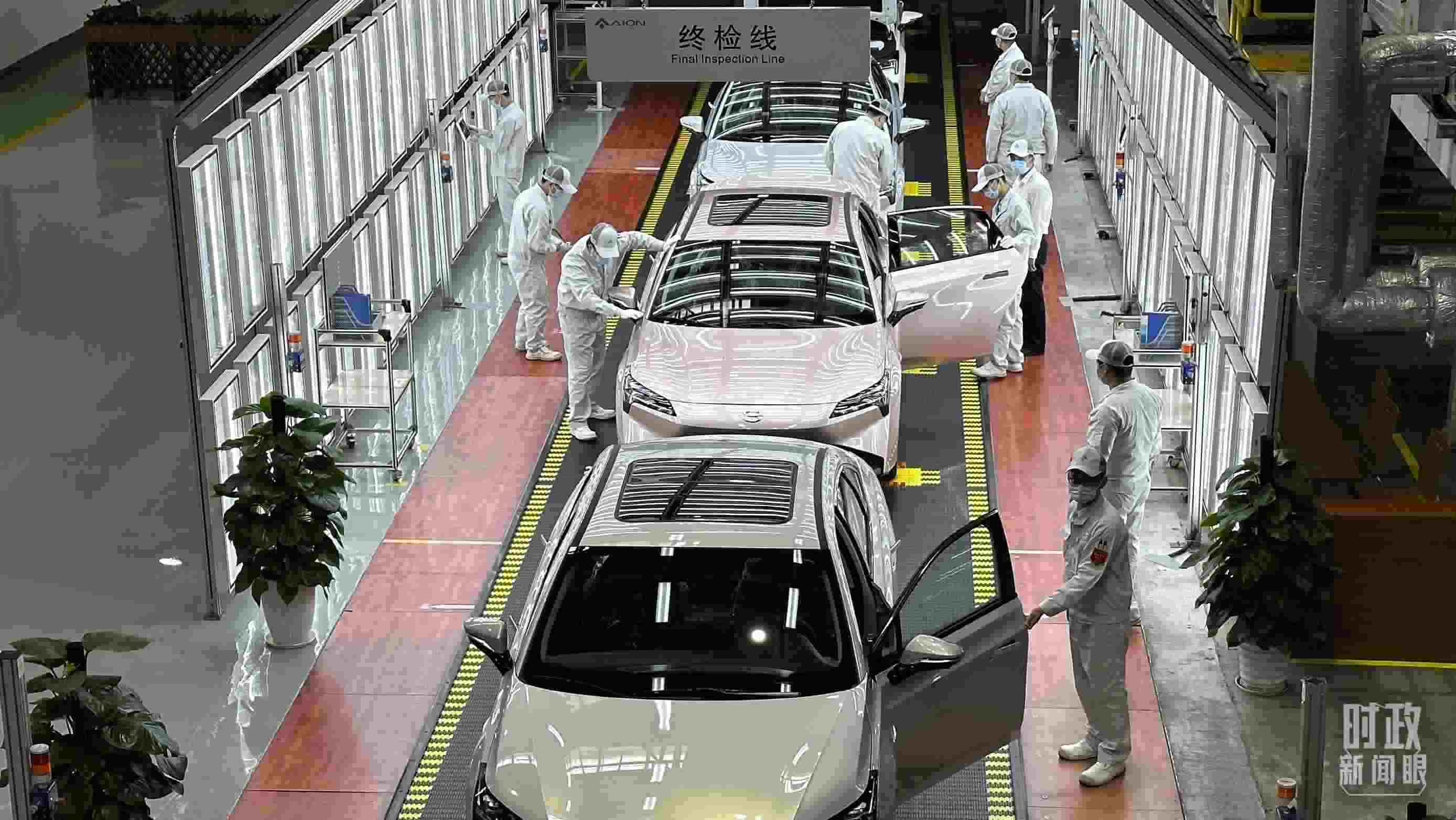 △廣汽埃安總裝車間終檢線作業(yè)現(xiàn)場。(總臺央視記者趙化拍攝)