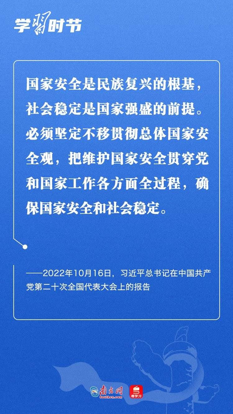 習(xí)近平總書記在黨的二十大報告中指出:“國家安全是民族復(fù)興的根基,社會穩(wěn)定是國家強盛的前提?!?月15日是我國第八個全民國家安全教育日。習(xí)近平總書記在2016年首個全民國家安全教育日到來之際曾強調(diào),實現(xiàn)中華民族偉大復(fù)興的中國夢,保證人民安居樂業(yè),國家安全是頭等大事。