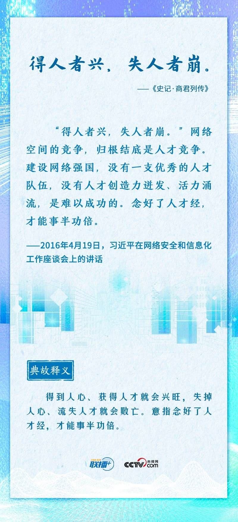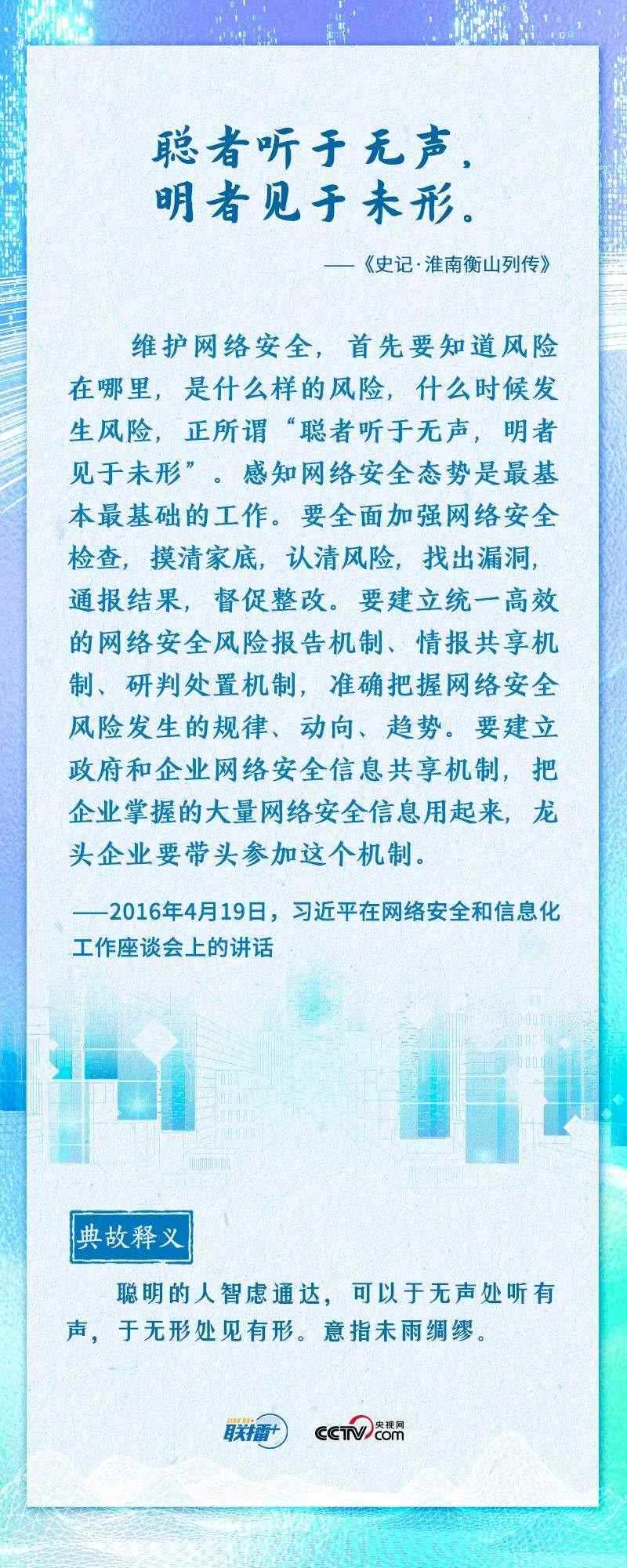 值此網(wǎng)絡(luò)安全和信息化工作座談會召開七周年之際,央視網(wǎng)《聯(lián)播+》推出海報(bào),邀您一起重溫總書記的經(jīng)典論述。