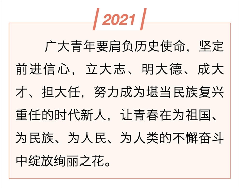 年輕充滿朝氣,青春孕育希望。無論過去、現(xiàn)在還是未來,中國青年始終是實(shí)現(xiàn)中華民族偉大復(fù)興的先鋒力量。