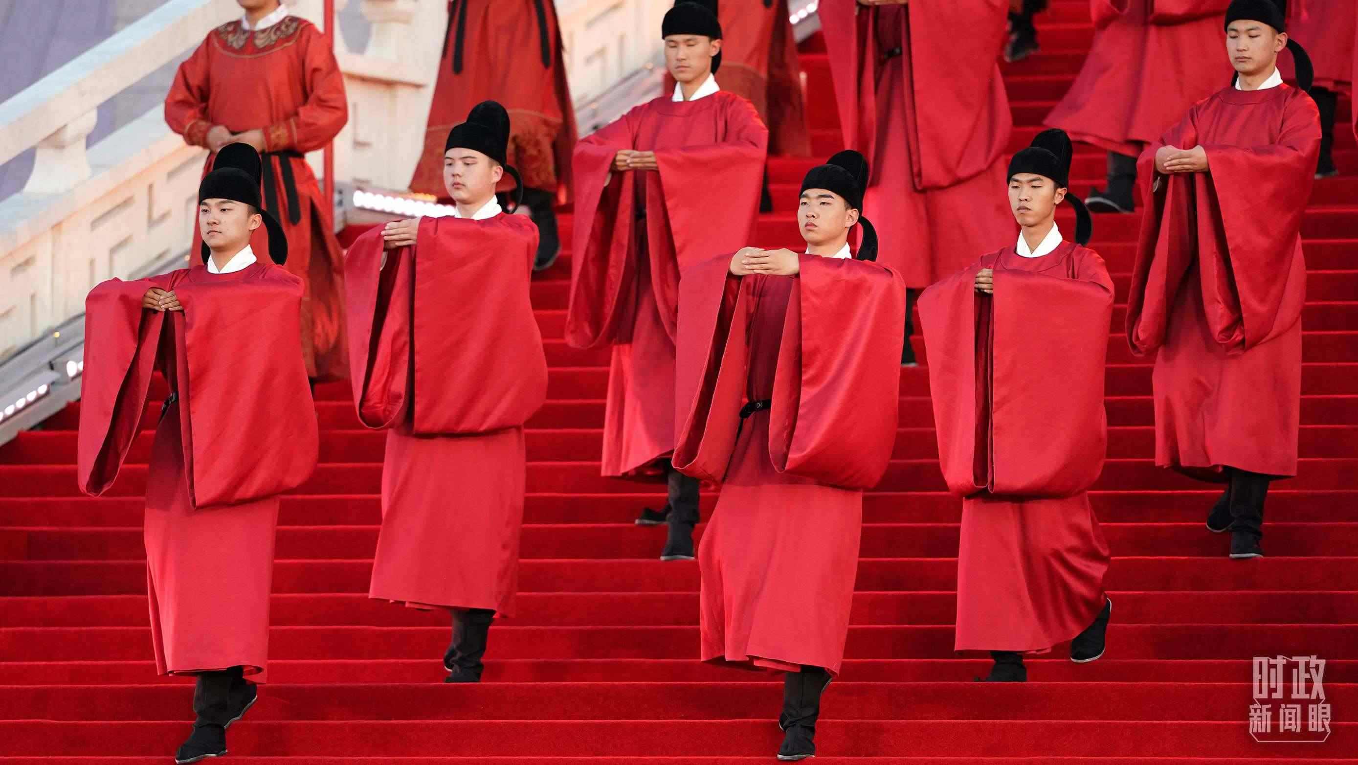 當晚的迎賓表演以“大唐盛禮”為主題,復原唐朝時期迎賓禮儀,以傳統(tǒng)文化之“禮”,迎遠道而來之“賓”。