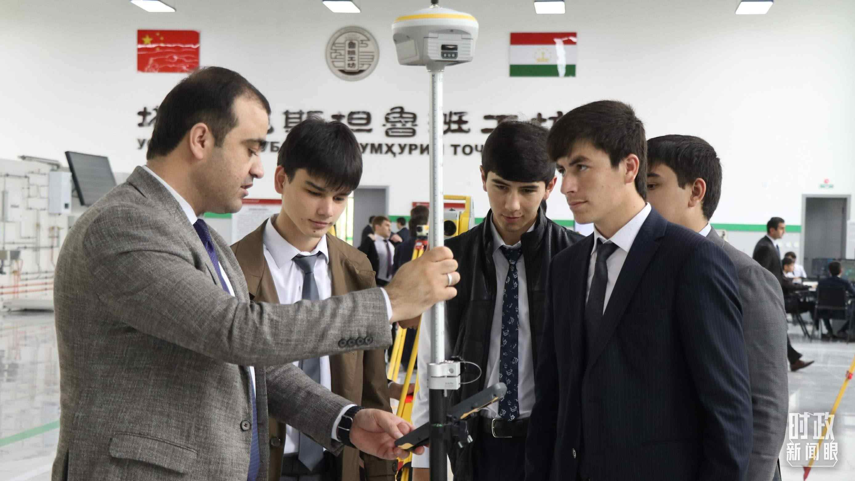 △在位于塔吉克斯坦杜尚別的魯班工坊內,塔方教師與學生們進行儀器實訓操作。(圖/視覺中國)
