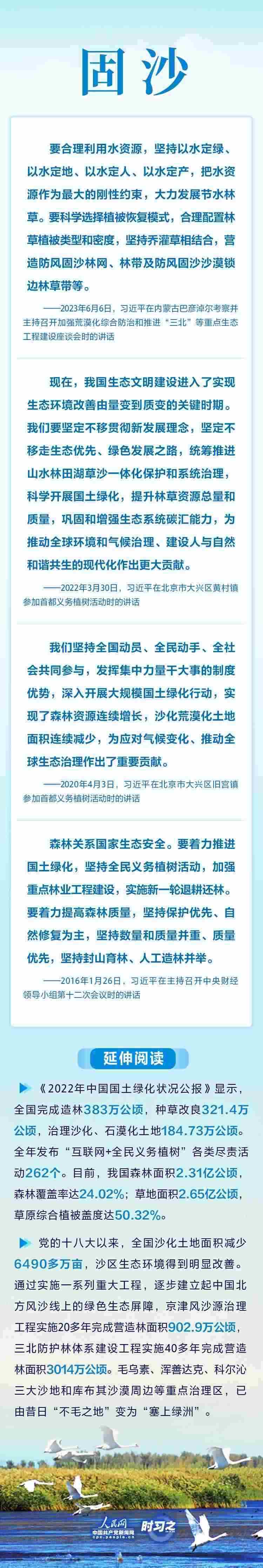 長期以來,在習(xí)近平生態(tài)文明思想的指引下,我國堅持走綠色發(fā)展之路,堅持科學(xué)防沙治沙,創(chuàng)造了“綠色奇跡”。