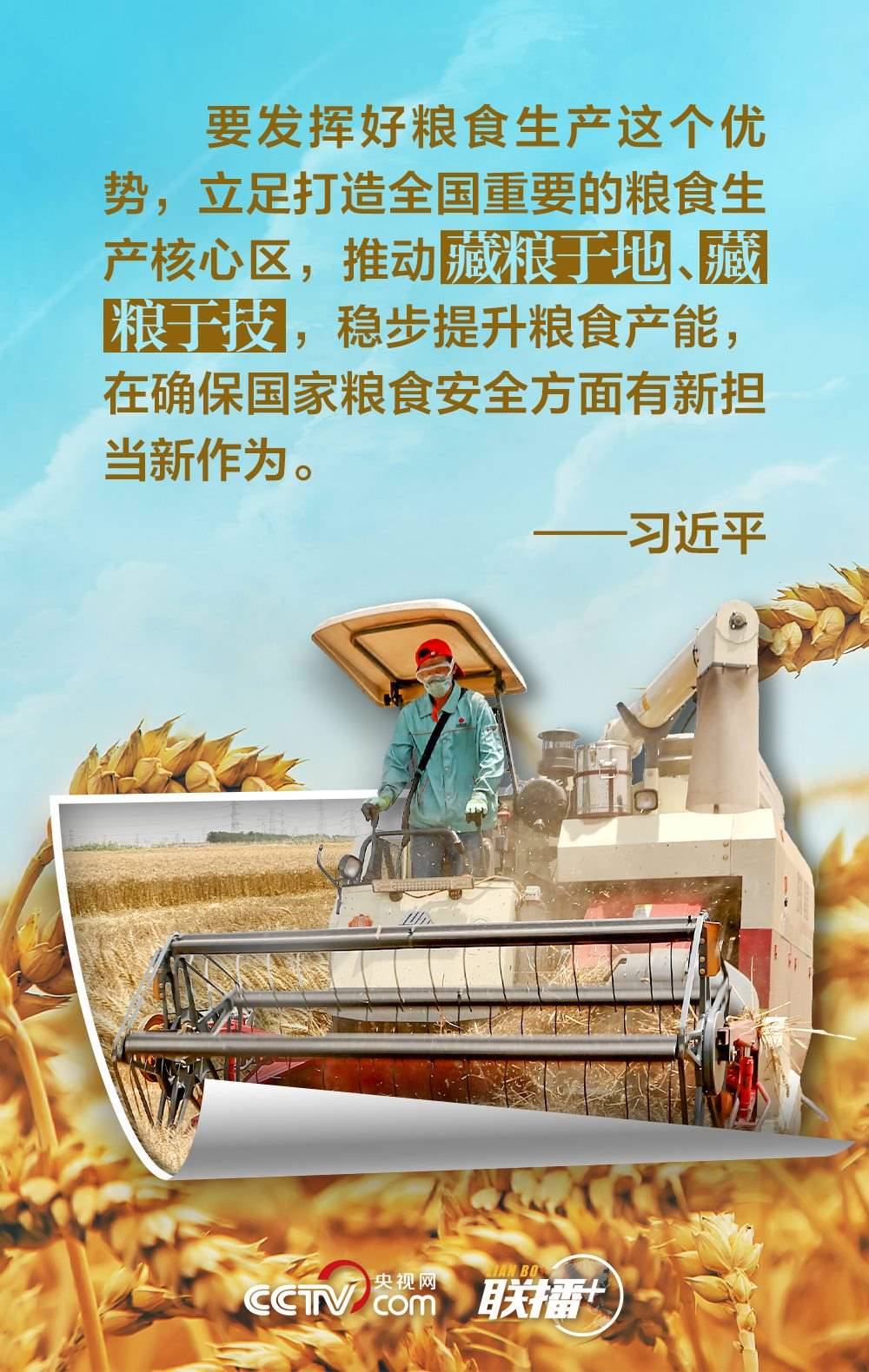 夏糧是全年糧食生產(chǎn)的第一季,約占我國全年糧食產(chǎn)量的五分之一,主要包括夏收的谷物、豆類和薯類等。“手中有糧,心中不慌?!绷?xí)近平總書記十分重視糧食安全,他強(qiáng)調(diào),中國人的飯碗任何時(shí)候都要牢牢端在自己手中,飯碗主要裝中國糧。值此夏收時(shí)節(jié),央視網(wǎng)《聯(lián)播+》與您一起學(xué)習(xí)領(lǐng)悟總書記的糧食觀。