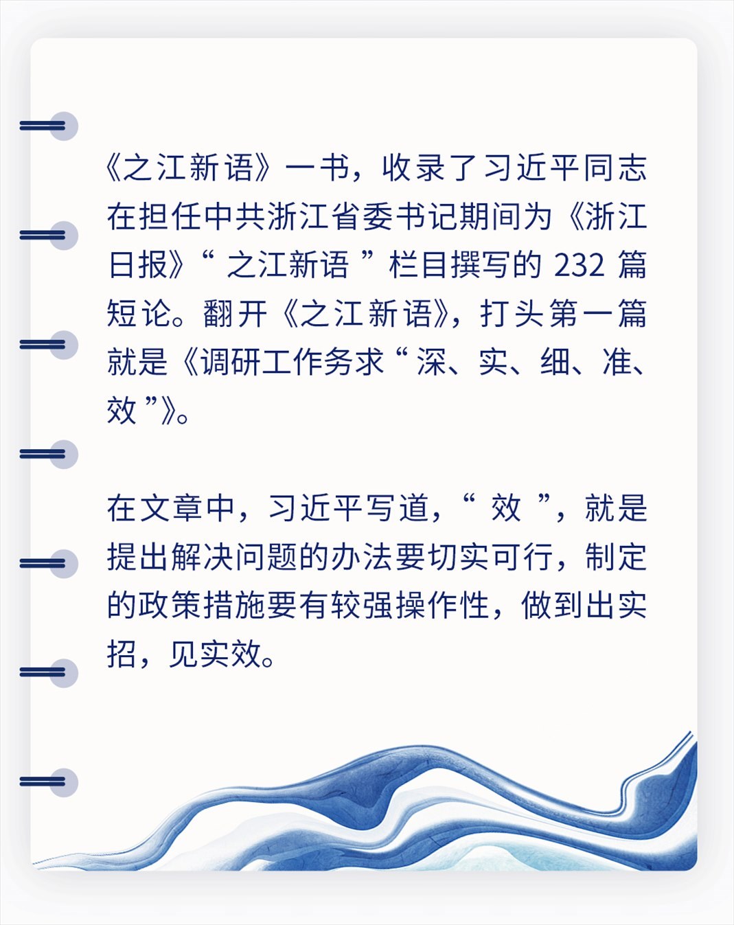 習近平總書記這樣強調求“效”的重要性:“衡量調查研究搞得好不好,不是看調查研究的規(guī)模有多大、時間有多長,也不是光看調研報告寫得怎么樣,關鍵要看調查研究的實效,看調研成果的運用,看能不能把問題解決好。”