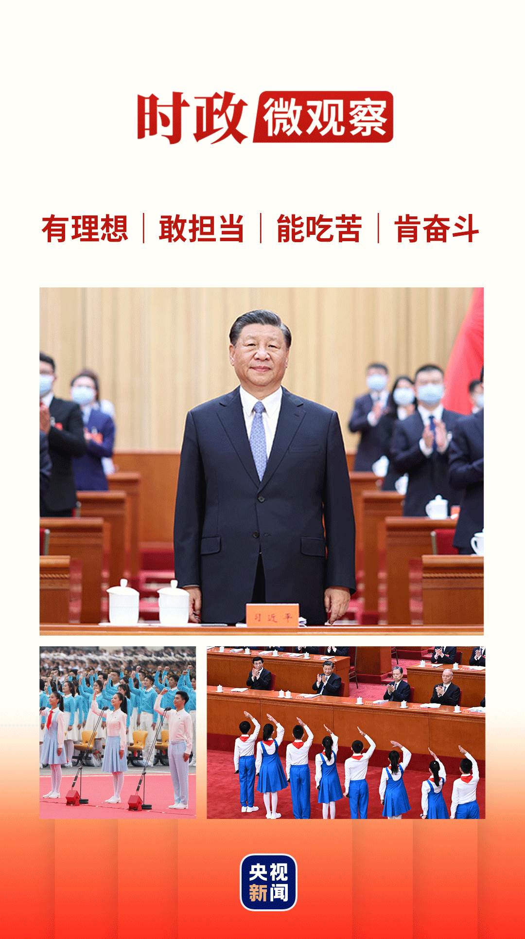 在慶祝中國(guó)共產(chǎn)主義青年團(tuán)成立100周年大會(huì)上、在黨的二十大報(bào)告中,習(xí)近平總書記都對(duì)新時(shí)代好青年提出4點(diǎn)要求——有理想、敢擔(dān)當(dāng)、能吃苦、肯奮斗。