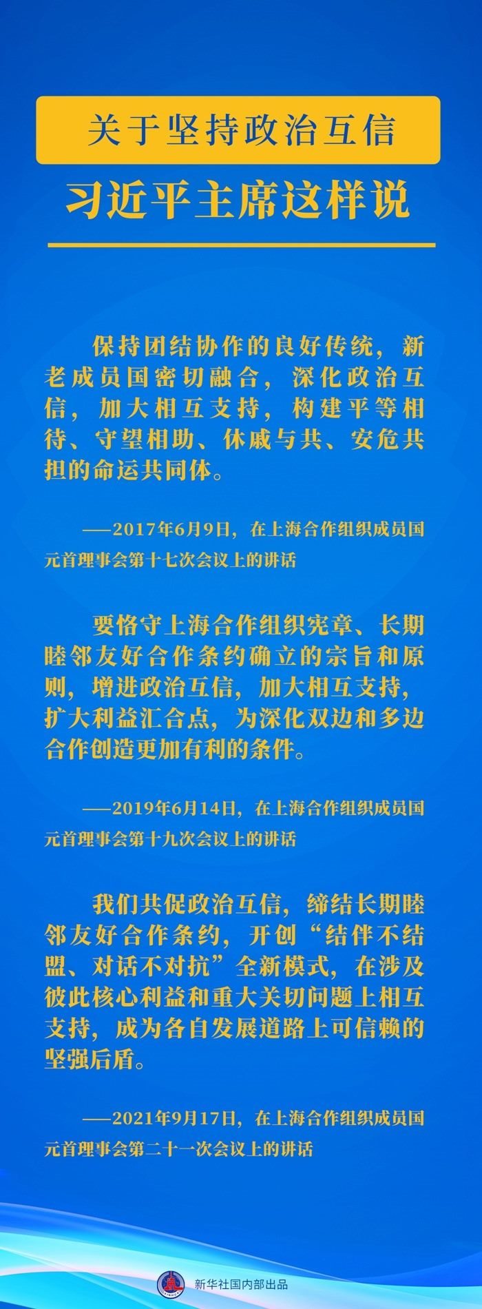 自2013年起,習(xí)近平主席已連續(xù)10年出席上合組織峰會并發(fā)表重要講話。習(xí)近平主席關(guān)于上合組織發(fā)展的這些重要論述,讓我們一起學(xué)習(xí)領(lǐng)悟↓