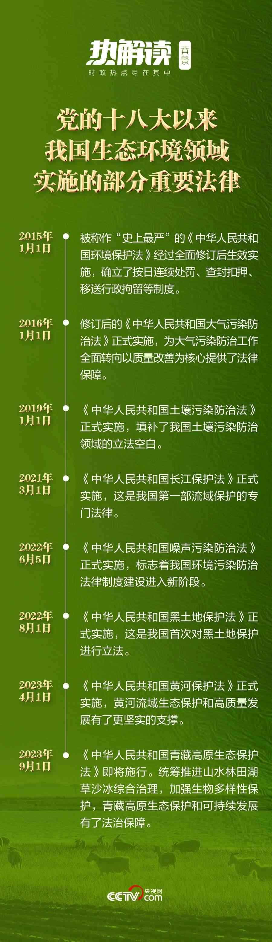 黨的十八大以來,越織越密的生態(tài)文明制度體系成為生態(tài)文明建設(shè)的有力保障。將“生態(tài)文明建設(shè)”寫入憲法,制定和修改長江保護法、土地管理法、森林法等,我國生態(tài)環(huán)境立法實現(xiàn)了從量到質(zhì)的全面提升。
