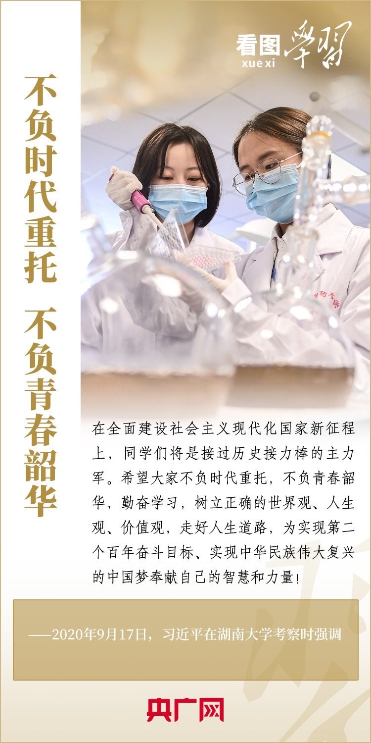 習(xí)近平總書記高度重視青年工作,關(guān)心青年成長成才。無論是地方考察到基層、進(jìn)企業(yè)、訪社區(qū)、走鄉(xiāng)村,還是多次考察高校、科研院所,總書記與青年人面對(duì)面交流,經(jīng)常通過書信方式勉勵(lì)廣大青年珍惜青春、追逐夢(mèng)想、拼搏奮斗。讓我們一起來感悟?qū)W習(xí),在強(qiáng)國建設(shè)、民族復(fù)興大道上不負(fù)重托、不負(fù)韶華!