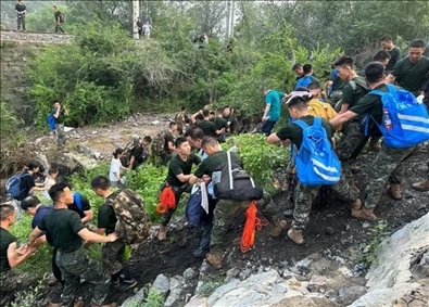8月5日夜間,搶險(xiǎn)人員完成北京房山15公里的軍紅路道路搶修疏通任務(wù),為大安山鄉(xiāng)及周邊1萬(wàn)余名群眾打通了“生命通道”。
