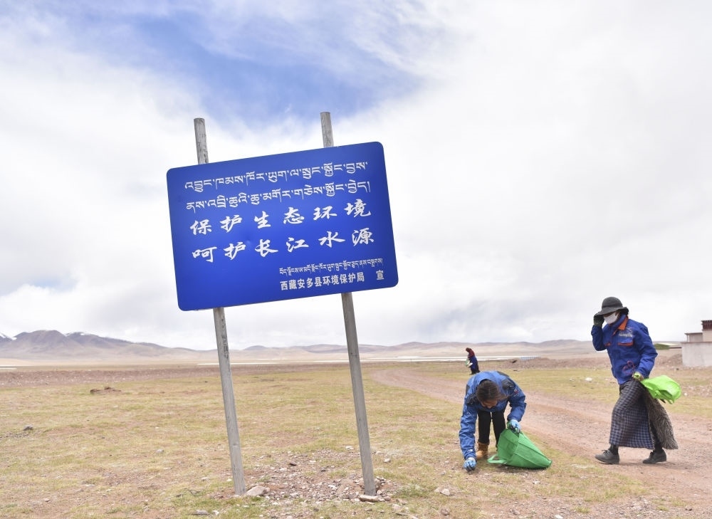2019年5月28日,瑪曲鄉(xiāng)村民在撿拾垃圾。為保護長江源生態(tài)環(huán)境,西藏安多縣瑪曲鄉(xiāng)每周都會在全鄉(xiāng)范圍內(nèi)組織“保護長江源”撿拾垃圾活動,由各村黨員志愿者帶頭,生態(tài)巡護員參與,群眾自愿參加。