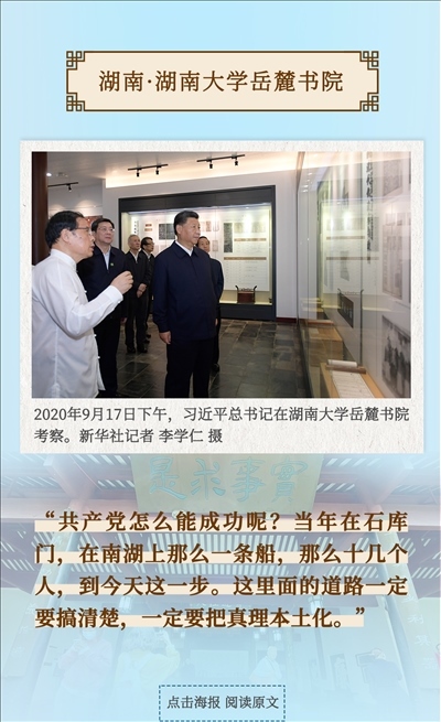從四川三蘇祠到河南殷墟遺址,從山東孔府、孔子研究院到湖南大學(xué)岳麓書(shū)院,從甘肅嘉峪關(guān)關(guān)城到福建朱熹園,從山西云岡石窟到廣東潮州古城……考察文化遺產(chǎn)、探尋文明根脈,帶著深厚的歷史感,習(xí)近平總書(shū)記的“文化足跡”遍及全國(guó)。