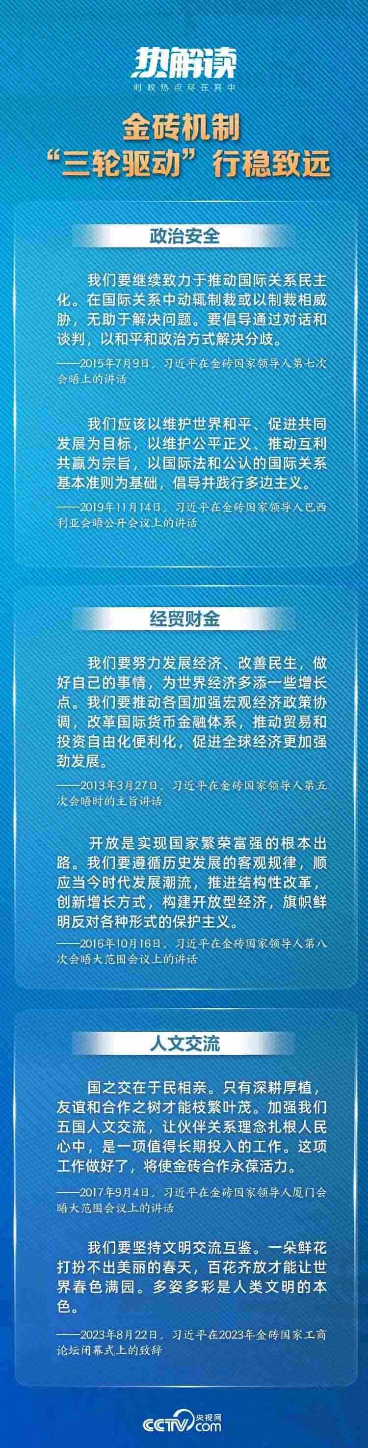 從字母組合的符號(hào)象征到一塊實(shí)打?qū)嵉摹敖鸫u”,回顧金磚合作機(jī)制走過的歷程,習(xí)近平主席倡導(dǎo)的“三輪驅(qū)動(dòng)”合作架構(gòu)為金磚國(guó)家合作發(fā)展提供了可行有效的抓手。
