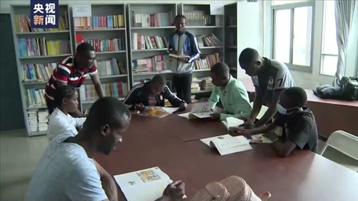 △漢語愛好者在恩古瓦比大學(xué)圖書館中國(guó)館里學(xué)習(xí)。
