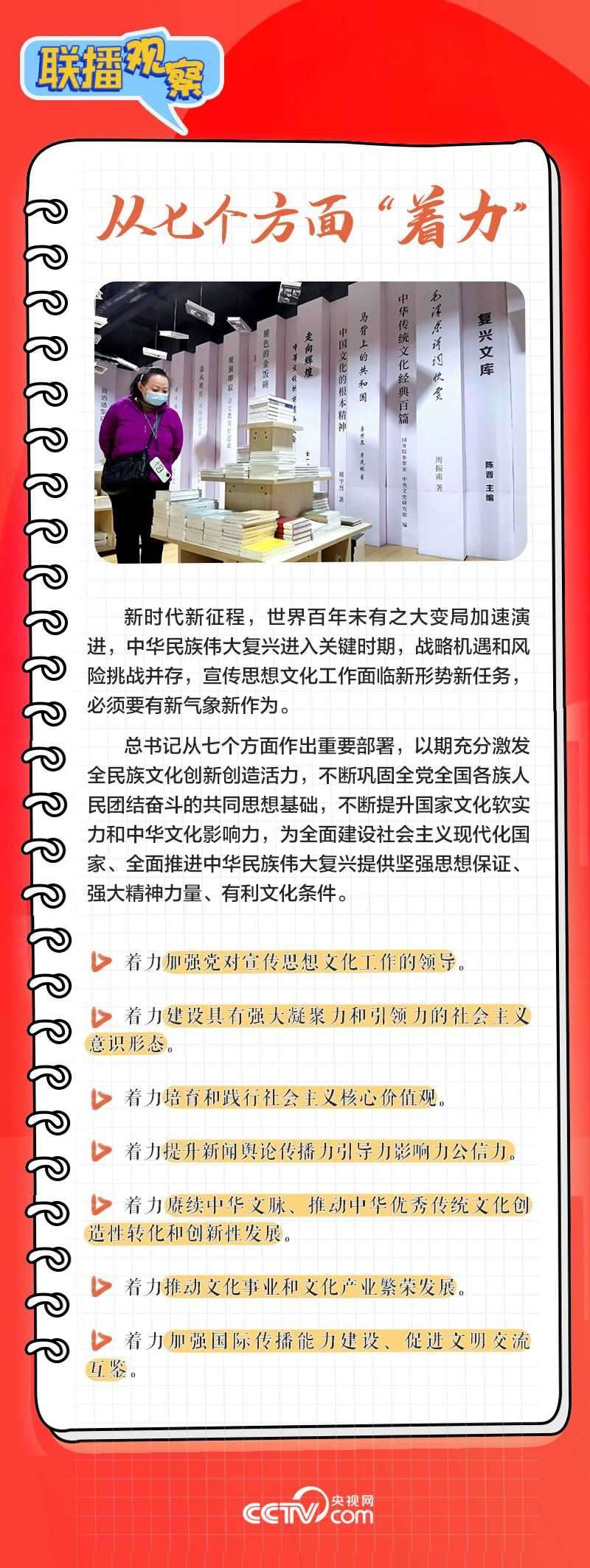 近日,習(xí)近平總書記對宣傳思想文化工作作出重要指示,提出“新的文化使命”“首要政治任務(wù)”等論斷,并要求從七個方面著力,為全面建設(shè)社會主義現(xiàn)代化國家、全面推進(jìn)中華民族偉大復(fù)興提供堅(jiān)強(qiáng)思想保證、強(qiáng)大精神力量、有利文化條件。