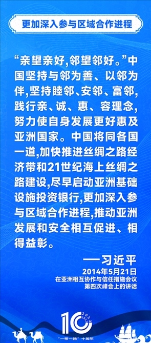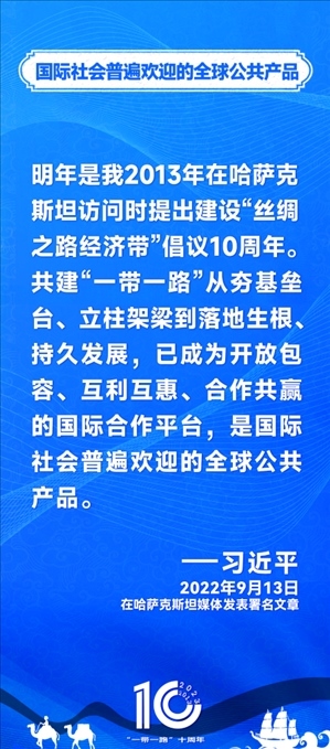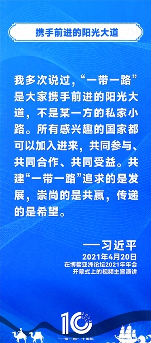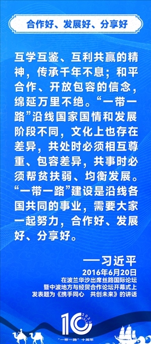10年前,習近平主席提出共建“絲綢之路經濟帶”和“21世紀海上絲綢之路”,即共建“一帶一路”倡議。過去10年來,習近平主席在多個場合發(fā)表講話和署名文章,為世界描繪了共建“一帶一路”互聯(lián)互通、合作共贏的宏偉藍圖。