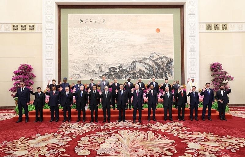 △2023年10月18日,第三屆“一帶一路”國(guó)際合作高峰論壇開(kāi)幕式前,習(xí)近平主席同出席高峰論壇的國(guó)際貴賓集體合影。