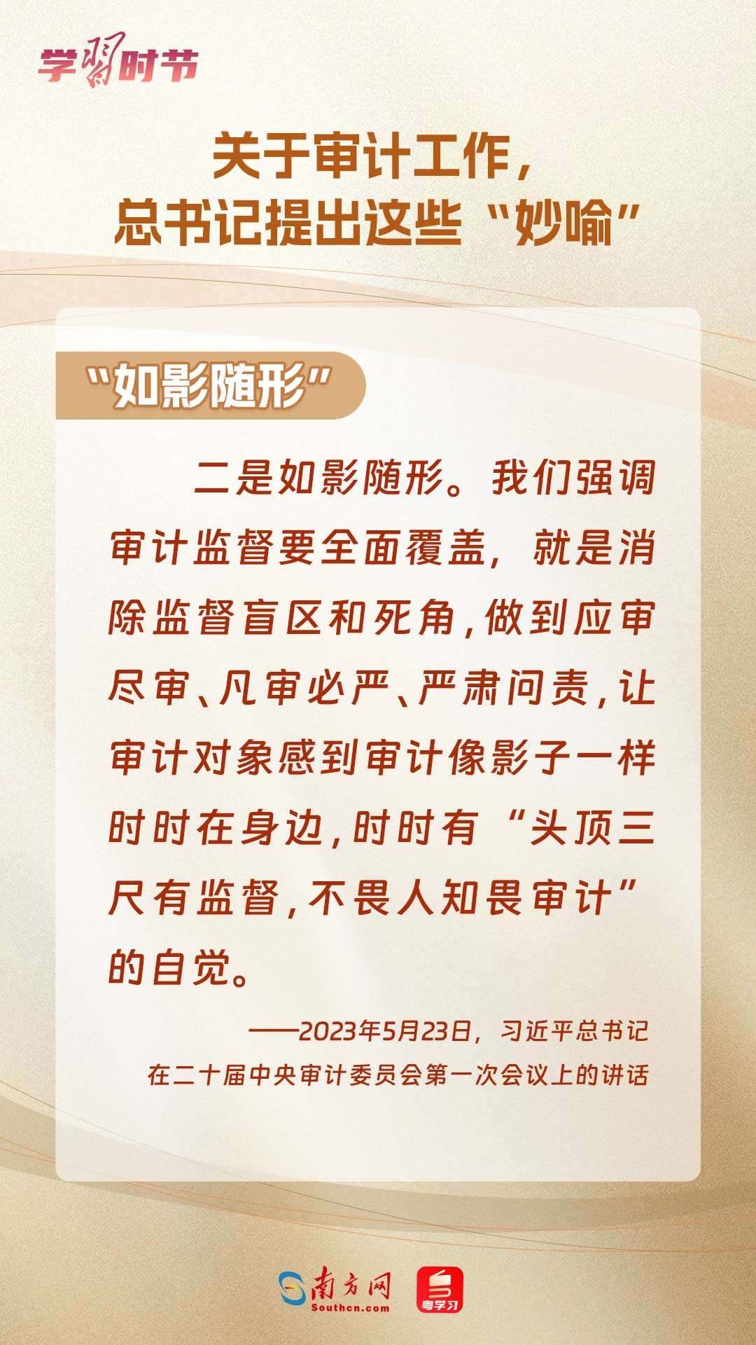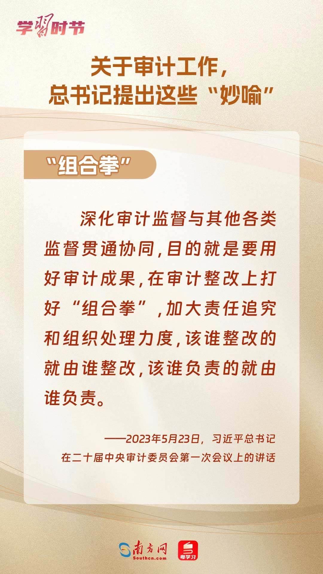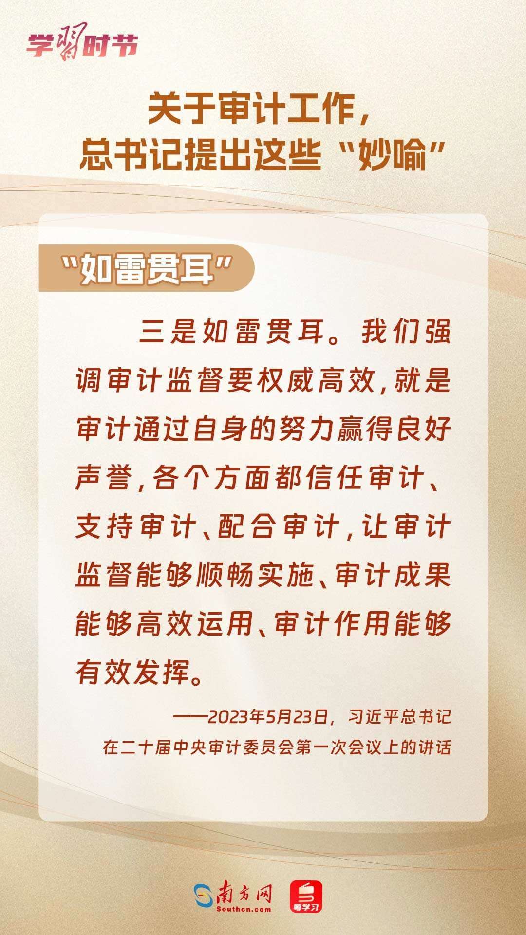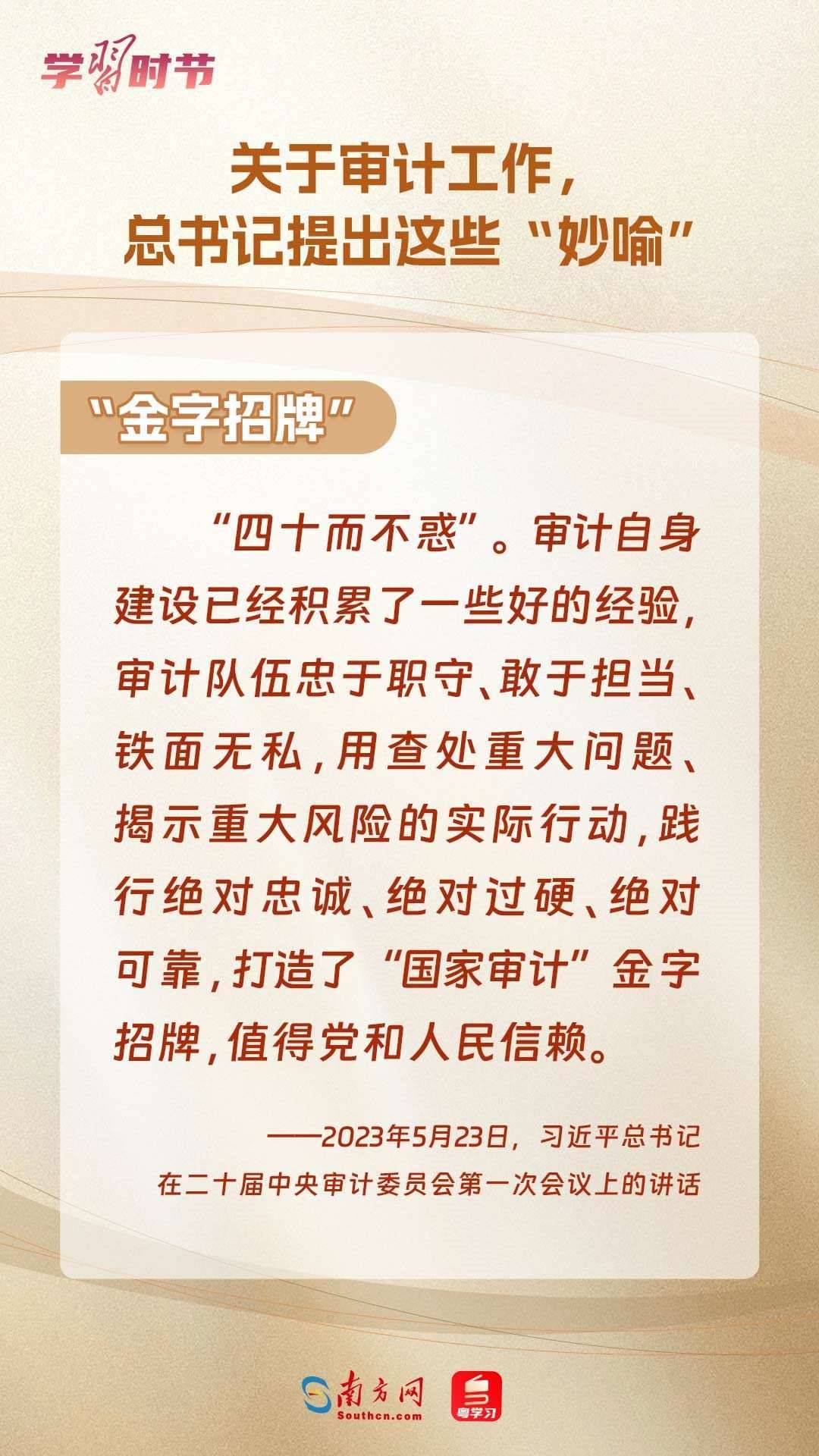 11月1日出版的《求是》雜志刊登了習近平總書記在二十屆中央審計委員會第一次會議上的講話全文??倳浽谥匾v話中“妙喻”審計工作,讓我們一同學習。