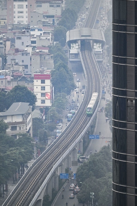 2023年12月9日,列車在越南河內(nèi)吉靈-河?xùn)|輕軌線上行駛。河內(nèi)吉靈-河?xùn)|線輕軌由中國(guó)中鐵六局集團(tuán)有限公司承建,是中越兩國(guó)共建“一帶一路”的標(biāo)志性項(xiàng)目。新華社記者 程一恒 攝