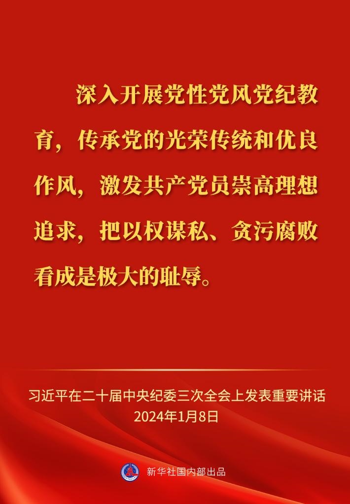 ??中共中央總書(shū)記、國(guó)家主席、中央軍委主席習(xí)近平8日上午在中國(guó)共產(chǎn)黨第二十屆中央紀(jì)律檢查委員會(huì)第三次全體會(huì)議上發(fā)表重要講話,一起來(lái)看金句?! ?/p>