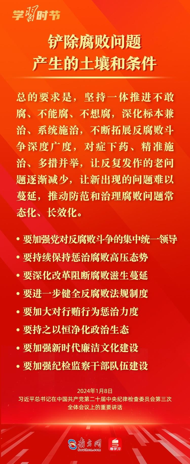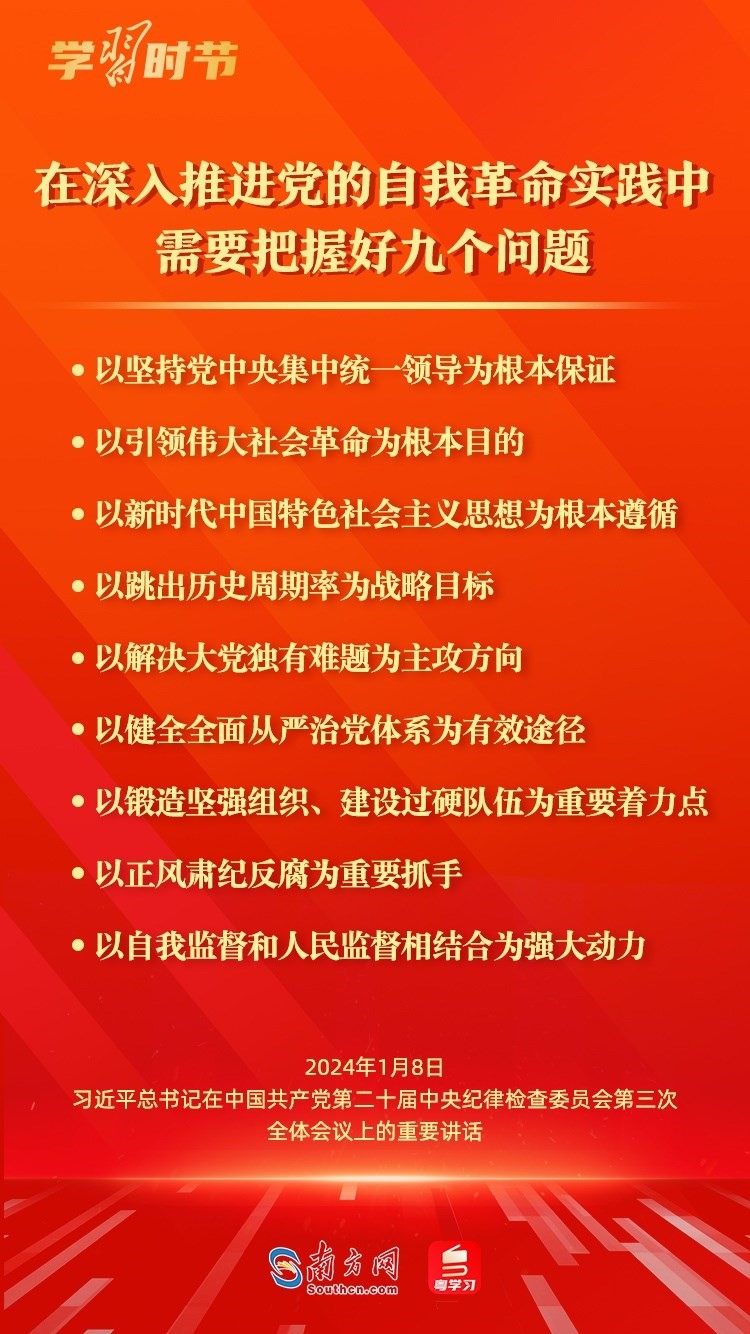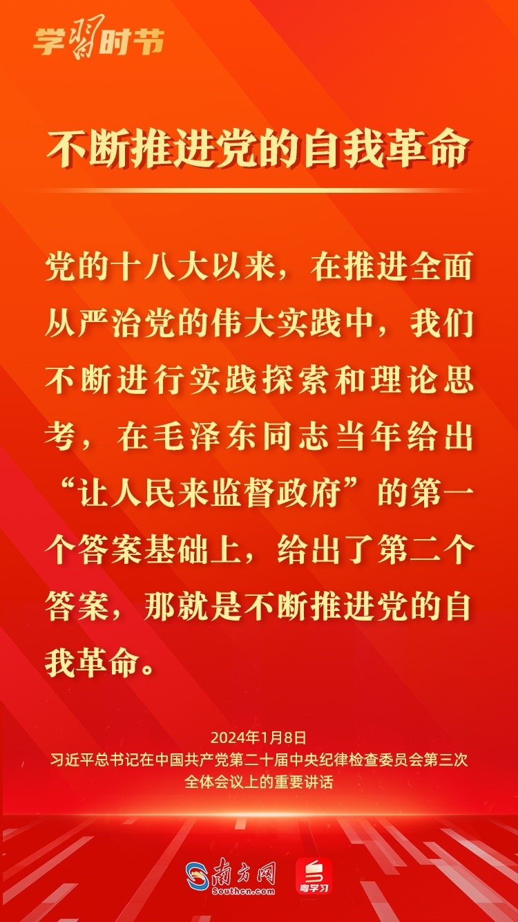 1月8日,中共中央總書記、國家主席、中央軍委主席習(xí)近平在中國共產(chǎn)黨第二十屆中央紀(jì)律檢查委員會第三次全體會議上發(fā)表重要講話,深刻闡述黨的自我革命的重要思想,對持續(xù)發(fā)力、縱深推進反腐敗斗爭作出戰(zhàn)略部署。