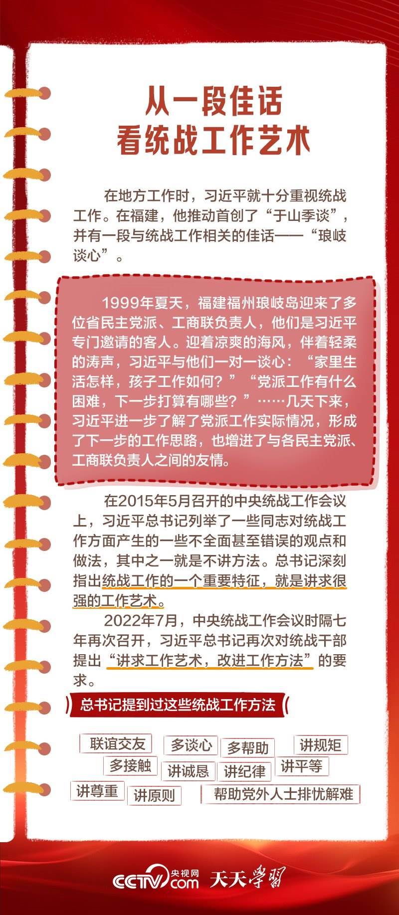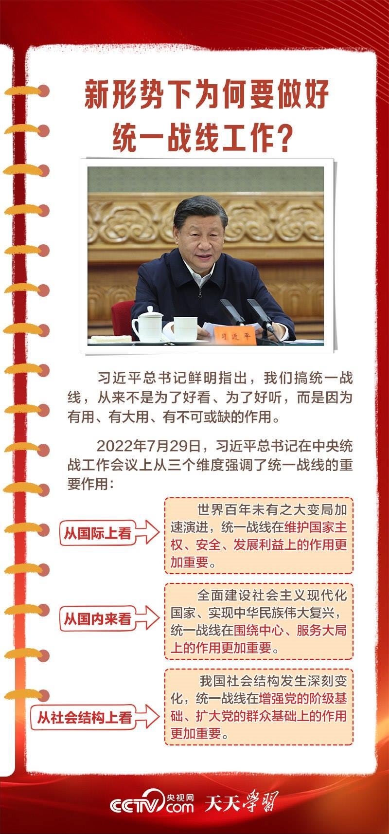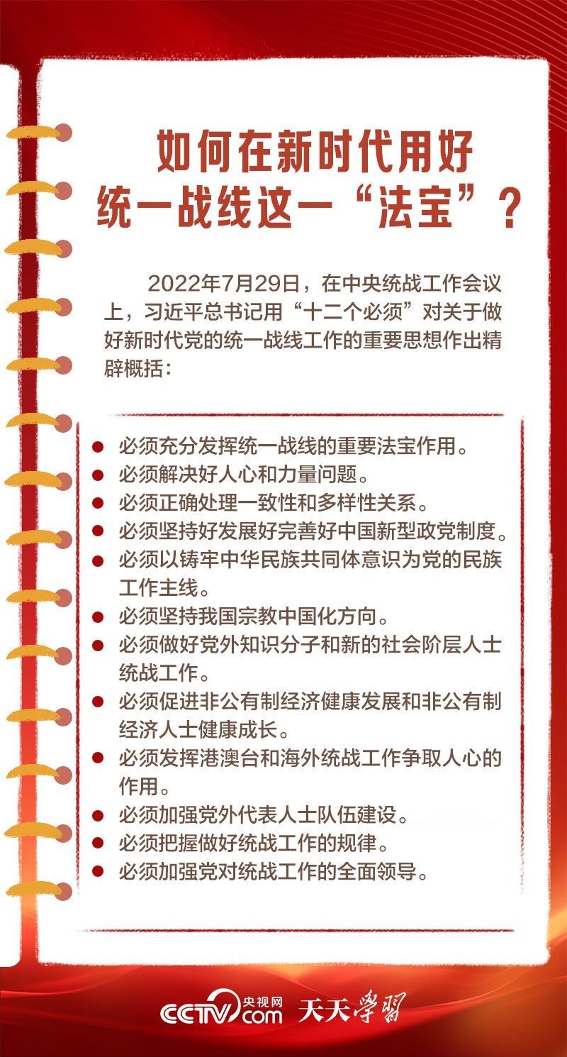 在百余年的奮斗歷程中,我們黨始終把統(tǒng)一戰(zhàn)線擺在重要位置,讓團結(jié)的旋律始終高昂,共同奮斗的力量始終激蕩。從“重要法寶”到“強大法寶”,體現(xiàn)出總書記對黨的統(tǒng)戰(zhàn)工作一以貫之的高度重視。