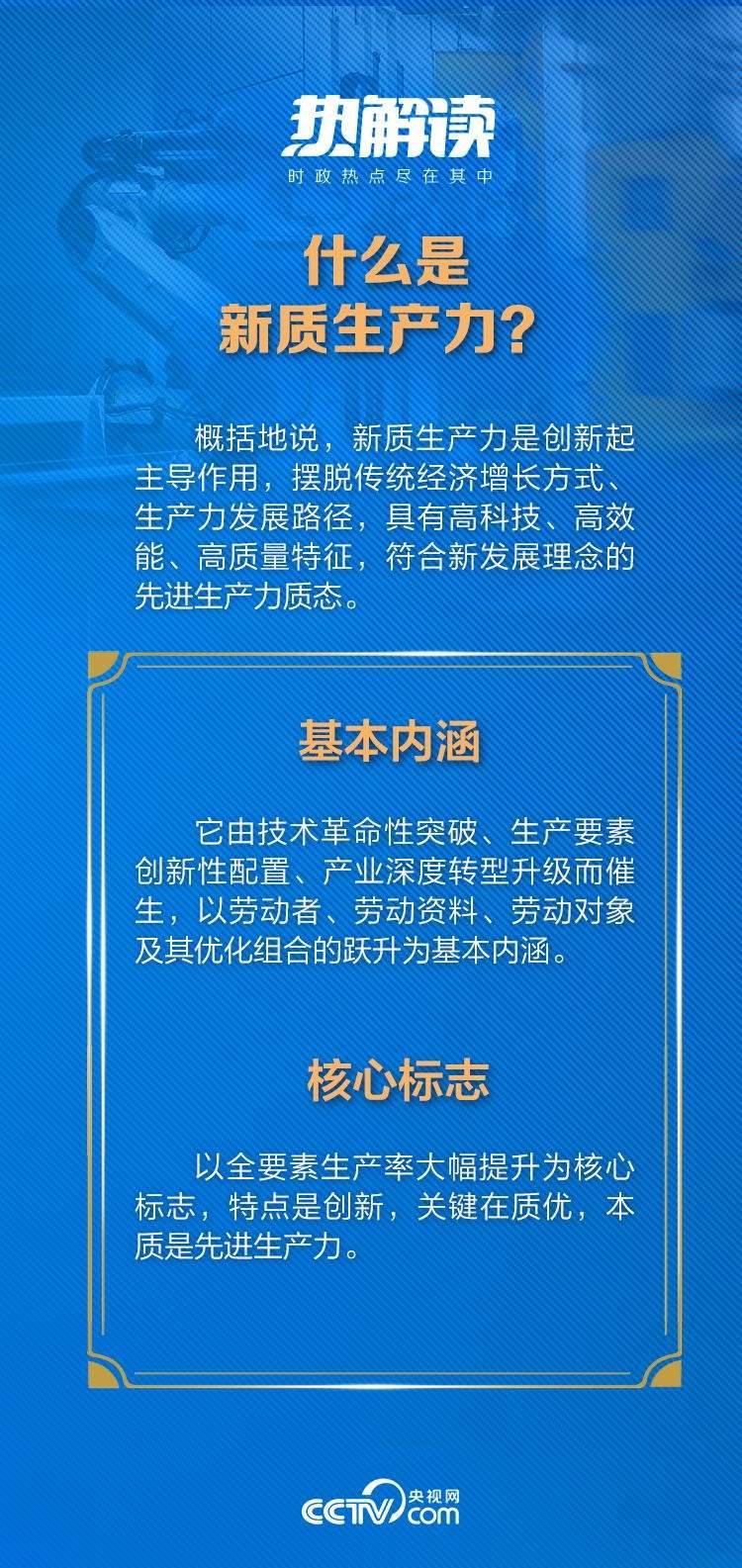 在這次集體學(xué)習(xí)中,習(xí)近平總書(shū)記首次全面系統(tǒng)闡釋了新質(zhì)生產(chǎn)力的重要概念和基本內(nèi)涵,并就如何推動(dòng)新質(zhì)生產(chǎn)力加快發(fā)展提出明確指引,要求“必須繼續(xù)做好創(chuàng)新這篇大文章”。