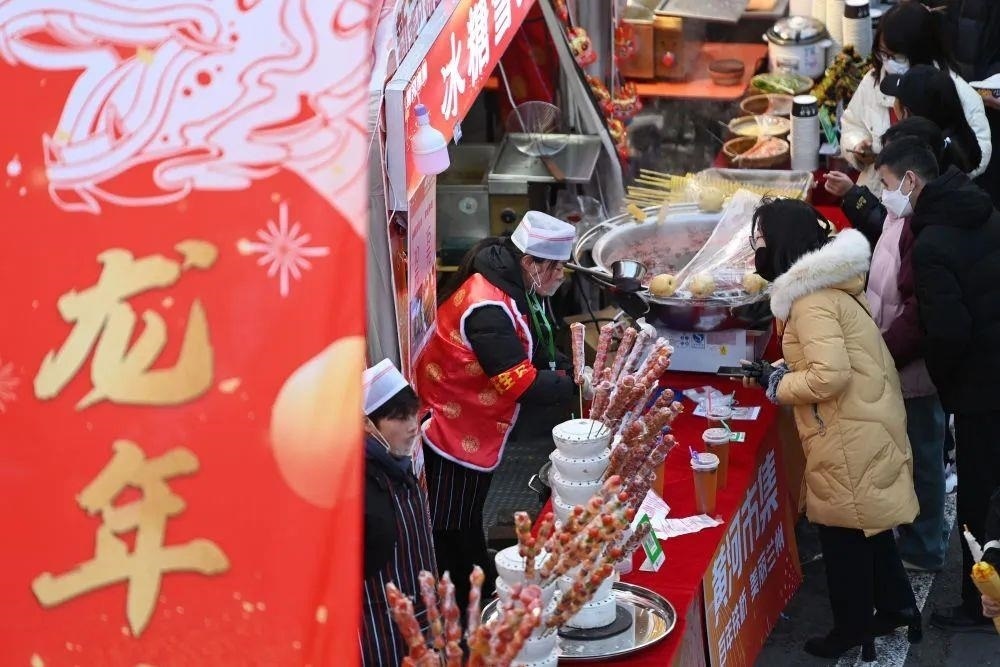 有拉洋片、雜技相聲等傳統(tǒng)技藝展示,也有賣炸灌腸、糖葫蘆的小攤位……今年春節(jié)期間,北京全面恢復(fù)傳統(tǒng)廟會,激活了許多老北京的獨特春節(jié)記憶。