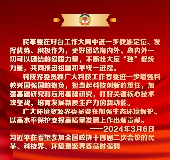 熱烈的掌聲中,習(xí)近平總書(shū)記步入會(huì)場(chǎng),親切看望參加全國(guó)政協(xié)十四屆二次會(huì)議的民革、科技界、環(huán)境資源界委員并參加聯(lián)組會(huì),聽(tīng)取大家的意見(jiàn)和建議。
