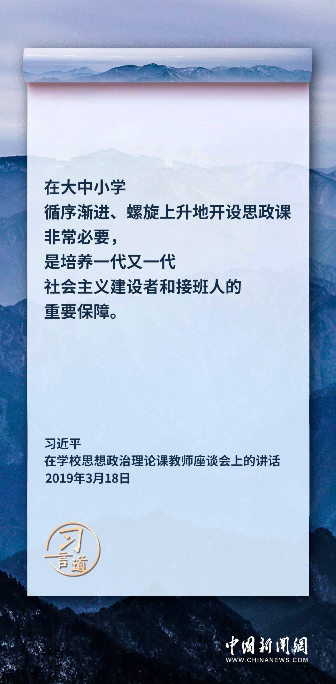 “蒙以養(yǎng)正,圣功也?!绷?xí)近平總書記高度重視思政課建設(shè),強(qiáng)調(diào)在大中小學(xué)循序漸進(jìn)、螺旋上升地開設(shè)思政課非常必要,是培養(yǎng)一代又一代社會(huì)主義建設(shè)者和接班人的重要保障。