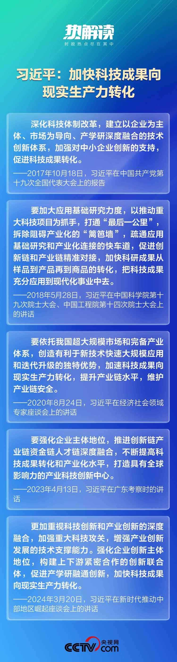 聽取湖南省委和省政府的工作匯報(bào),總書記再提新質(zhì)生產(chǎn)力,同樣提到科技成果轉(zhuǎn)化問題:“促進(jìn)創(chuàng)新鏈產(chǎn)業(yè)鏈資金鏈人才鏈深度融合,推動(dòng)科技成果加快轉(zhuǎn)化為現(xiàn)實(shí)生產(chǎn)力。”