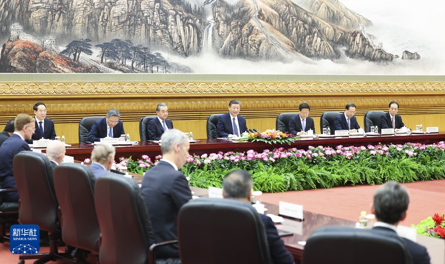 ??美中關(guān)系全國委員會(huì)董事會(huì)主席格林伯格、黑石集團(tuán)董事長兼首席執(zhí)行官蘇世民、高通公司總裁兼首席執(zhí)行官安蒙、哈佛大學(xué)肯尼迪政府學(xué)院創(chuàng)始院長艾利森、美中貿(mào)易全國委員會(huì)會(huì)長艾倫等美方代表在發(fā)言中感謝習(xí)近平主席撥冗會(huì)見。他們表示,過去幾十年來,中國實(shí)現(xiàn)了非凡經(jīng)濟(jì)增長和轉(zhuǎn)型,體現(xiàn)了強(qiáng)大韌性和活力。在習(xí)近平主席卓越領(lǐng)導(dǎo)下,中國致力于發(fā)展新質(zhì)生產(chǎn)力,實(shí)現(xiàn)更可持續(xù)的高質(zhì)量發(fā)展。中國人民的發(fā)展權(quán)利應(yīng)該得到尊重。相信中國將實(shí)現(xiàn)自身發(fā)展目標(biāo),促進(jìn)世界經(jīng)濟(jì)發(fā)展和融合。一個(gè)強(qiáng)大、繁榮的中國是世界的正能量。美中經(jīng)濟(jì)關(guān)系緊密依存,兩國唯有和平共處,才能實(shí)現(xiàn)各自發(fā)展繁榮?!靶尬舻椎孪葳濉辈⒎潜厝弧C绹髽I(yè)贊賞中方近期出臺的一系列進(jìn)一步改革開放的重要舉措,看好中國經(jīng)濟(jì)發(fā)展前景,將堅(jiān)定不移繼續(xù)深耕中國,同中國發(fā)展長期緊密的合作關(guān)系。習(xí)近平主席同拜登總統(tǒng)去年11月在舊金山成功會(huì)晤,提振了美國各界和世界對美中關(guān)系未來的預(yù)期和信心。美國工商界和戰(zhàn)略學(xué)術(shù)界支持美中雙方加強(qiáng)各層級交往交流,增進(jìn)相互理解、信任與合作,攜手應(yīng)對全球性挑戰(zhàn),推動(dòng)建立穩(wěn)定、可持續(xù)、富有成效的美中關(guān)系。