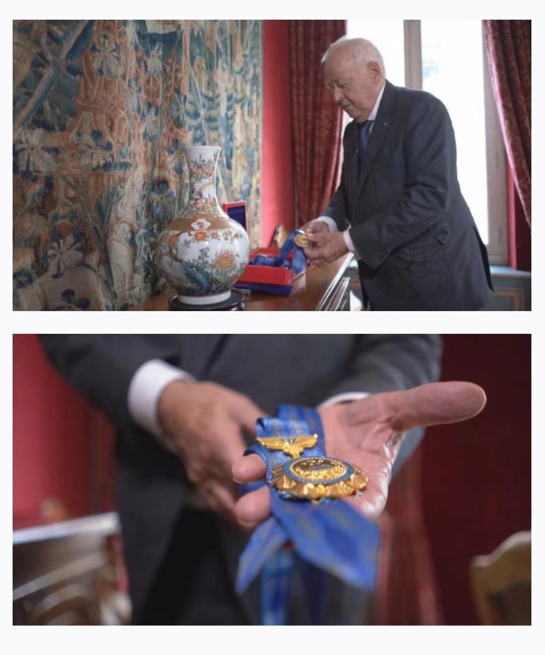 △阿蘭·梅里埃獲得的“中國改革友誼獎章”