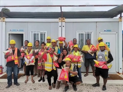 △中國(guó)企業(yè)為瑙魯當(dāng)?shù)貑T工發(fā)放節(jié)日慰問品。