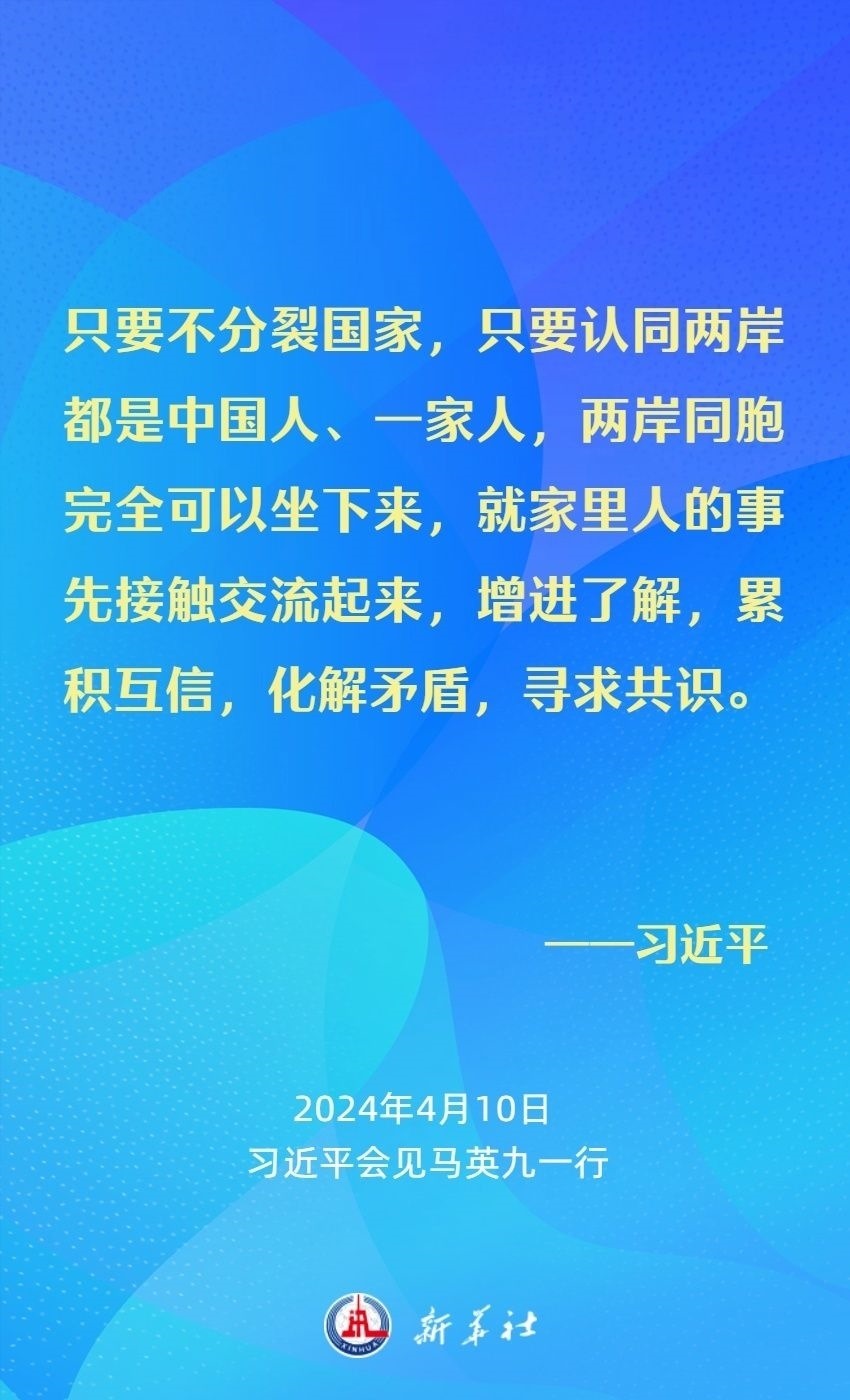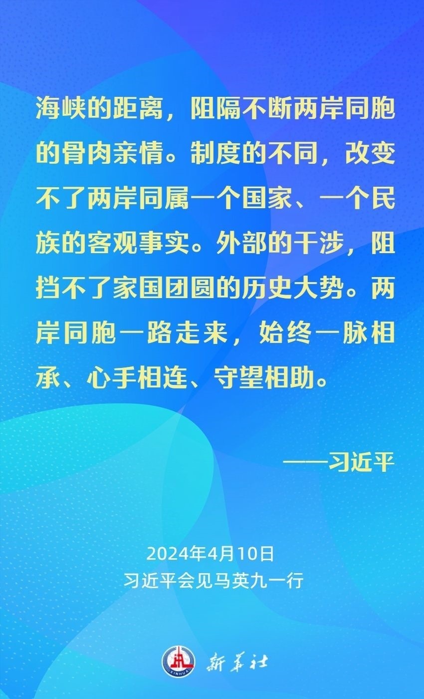 習近平強調(diào),兩岸同胞有共同的血脈、共同的文化、共同的歷史,更重要的是我們對民族有共同的責任、對未來有共同的期盼。我們要從中華民族整體利益和長遠發(fā)展來把握兩岸關系大局。
