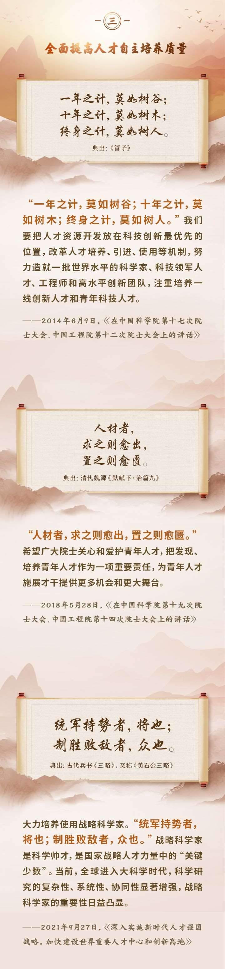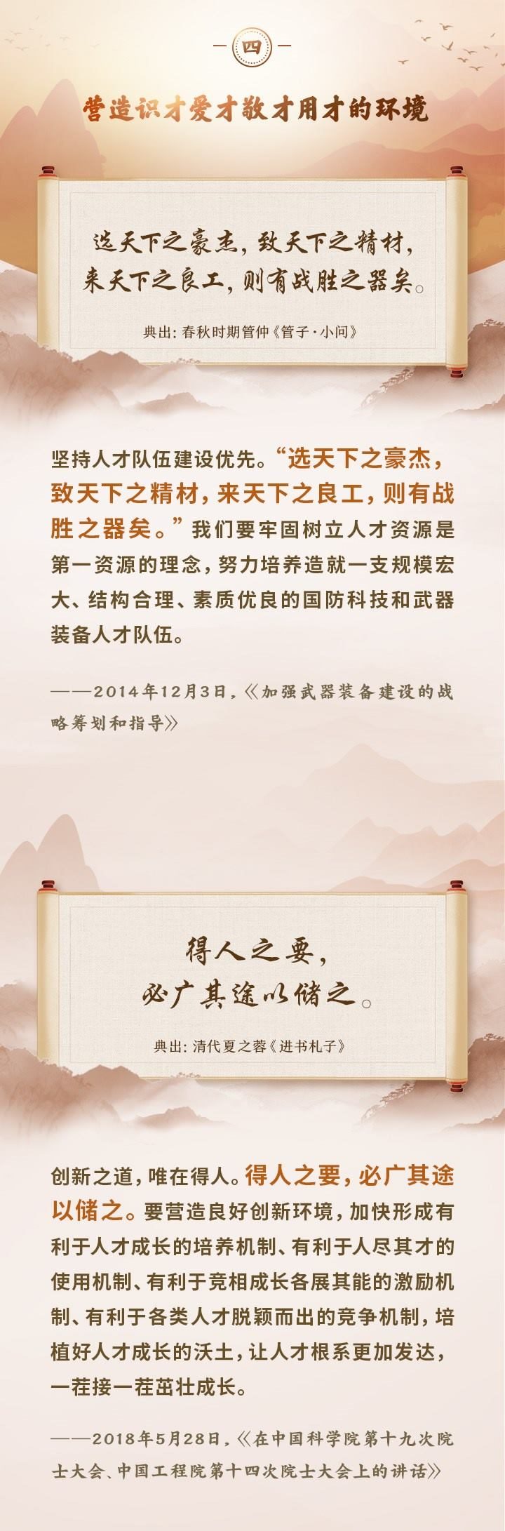 編者按:培養(yǎng)造就大批德才兼?zhèn)涞母咚刭|(zhì)人才,是國家和民族長遠(yuǎn)發(fā)展大計。黨的十八大以來,習(xí)近平總書記圍繞人才工作發(fā)表一系列重要論述,立意高遠(yuǎn),內(nèi)涵豐富,思想深刻,深刻回答了為什么建設(shè)人才強國、什么是人才強國、怎樣建設(shè)人才強國的重大理論和實踐問題。在這些重要論述中,總書記精妙運用古代典籍、經(jīng)典名句,以古喻今、啟迪思想、激蕩精神,讓我們一起來學(xué)習(xí)!