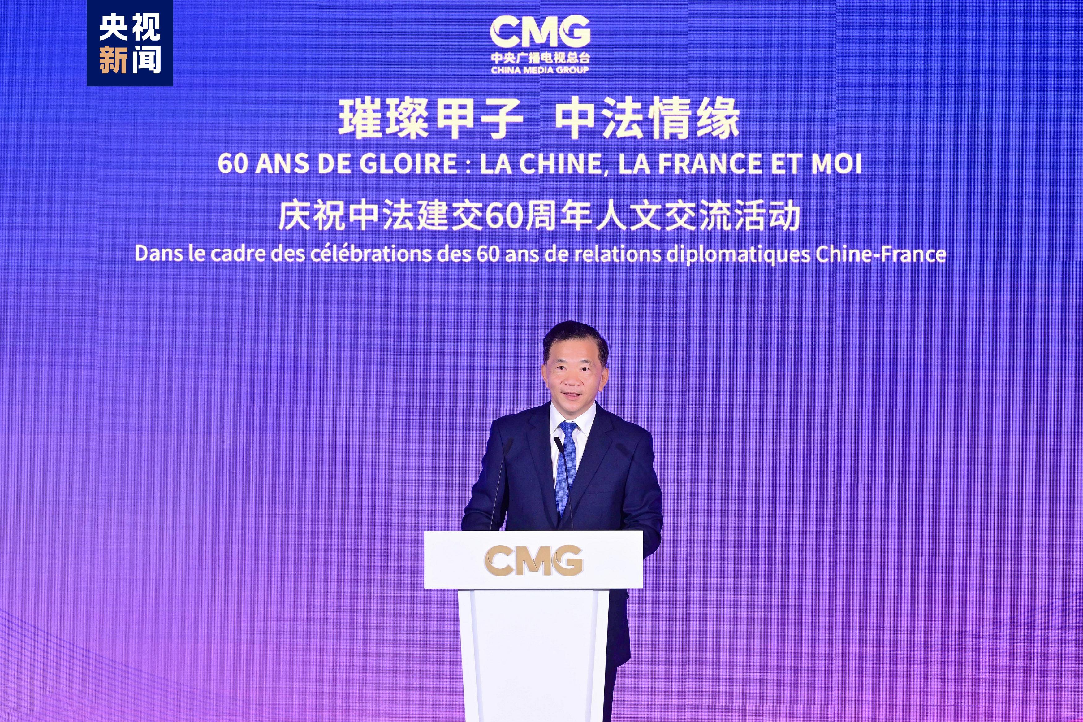 慎海雄表示,習近平主席指出,敢為人先、與時俱進是中法關系始終走在中國同西方國家關系前列的重要法寶。法國是具有獨立見解、獨特個性的西方大國,不僅因其經濟實力,還因國家品質和人民氣節(jié),贏得了中國人民的尊重。建交60年來,中法兩國的友誼之船在兩國元首把舵定向下行穩(wěn)致遠。人文交流貴在思想、文化的交匯、碰撞和吸引。中央廣播電視總臺精品節(jié)目《平“語”近人——習近平喜歡的典故》(國際版)在法國播出,為大家讀懂習主席的思想、中國文化、中國智慧打開一扇思想之窗,邀大家共賞璀璨輝煌的中華文明和新時代中國的獨特魅力。站在中法建交一甲子的歷史節(jié)點,總臺愿與法國朋友們并肩同行,為打造更加牢固、更富活力的中法全面戰(zhàn)略伙伴關系、推動構建人類命運共同體貢獻智慧和力量。