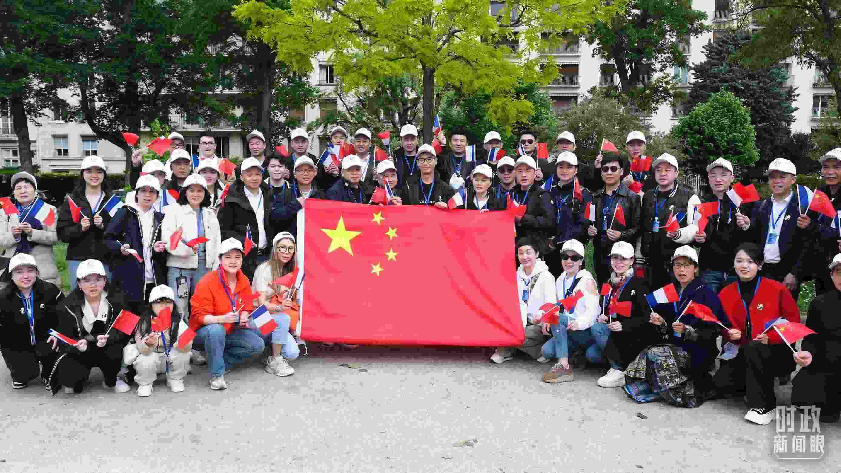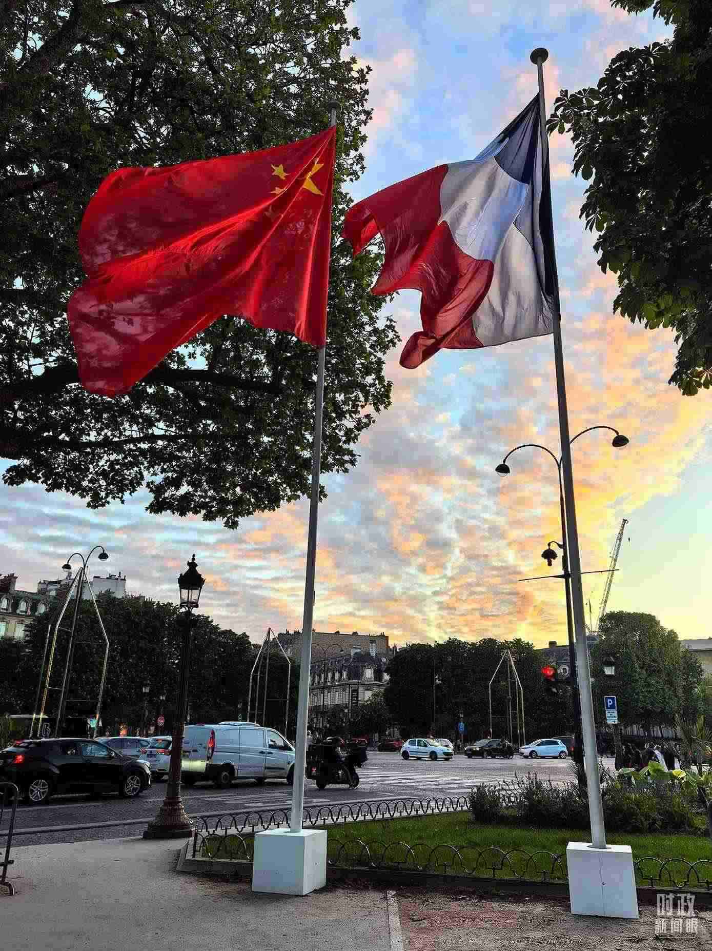 △巴黎街頭懸掛的中法兩國國旗。(總臺國廣記者吳倩拍攝)
