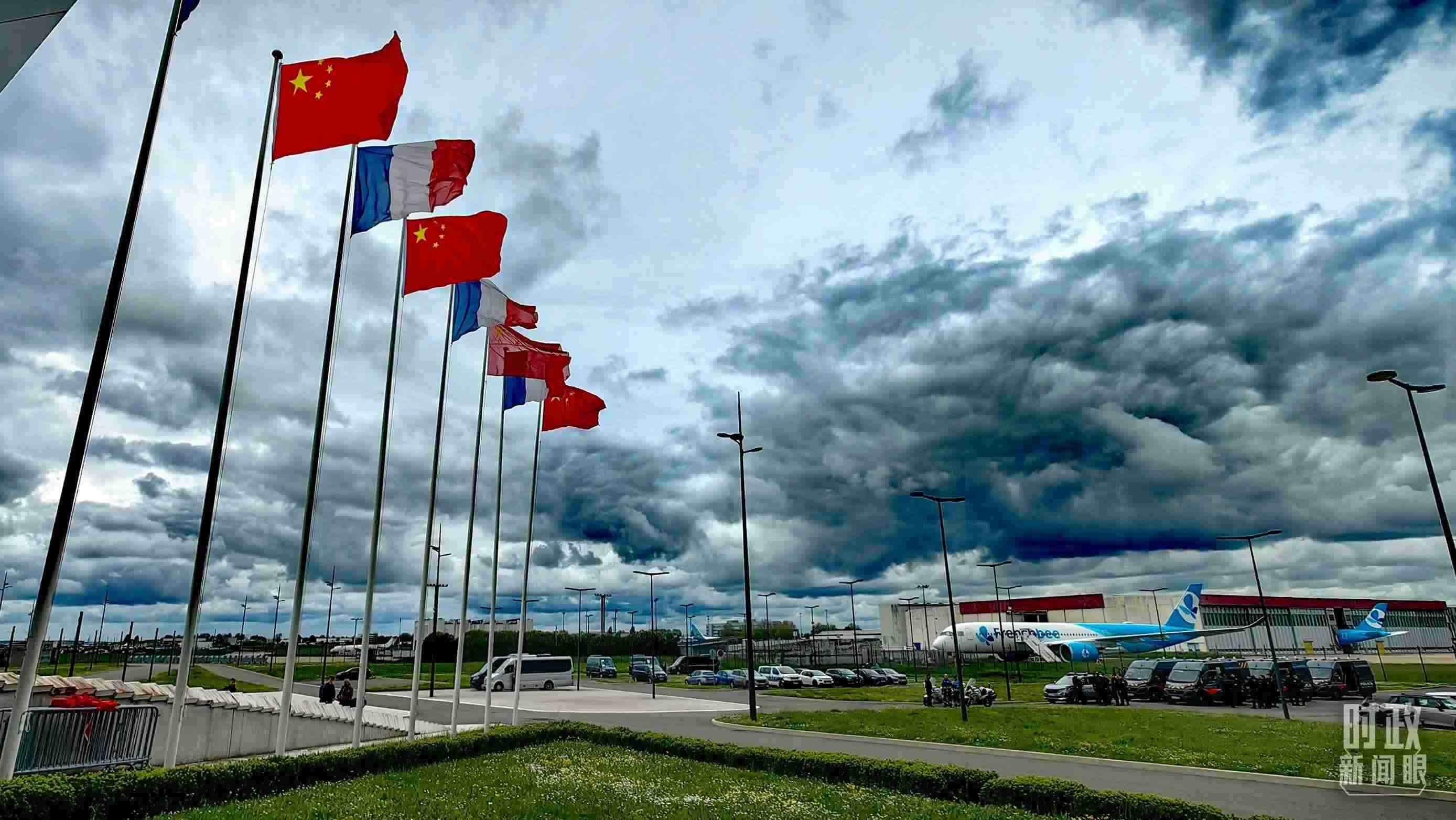 △巴黎奧利機場,中法兩國國旗迎風(fēng)招展。(總臺央視記者段德文拍攝)