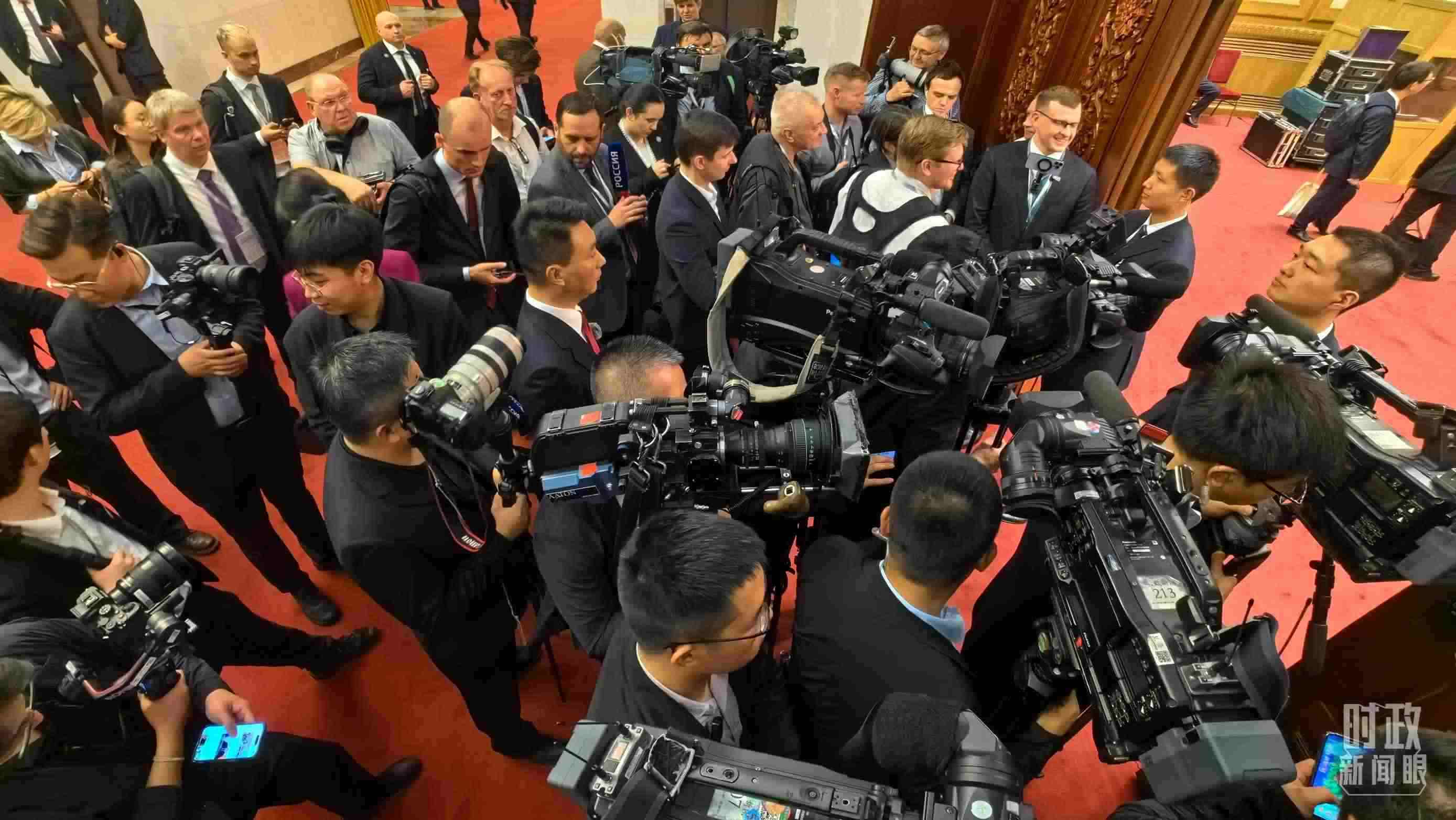 △當(dāng)天參與現(xiàn)場(chǎng)報(bào)道的中外記者。(總臺(tái)央視記者楊波、王子杭拍攝)