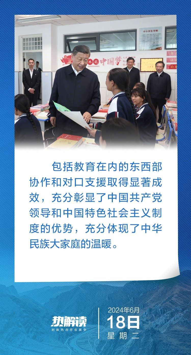 6月18日下午,在青海省考察的習(xí)近平總書記,首站來到這所中學(xué)看望老師和同學(xué)們。他先后走進(jìn)食堂、宿舍、教室,關(guān)心學(xué)生們的飲食、住宿、學(xué)習(xí)……了解當(dāng)?shù)厣钊胪七M(jìn)教育工作東西部協(xié)作和對口支援等情況。