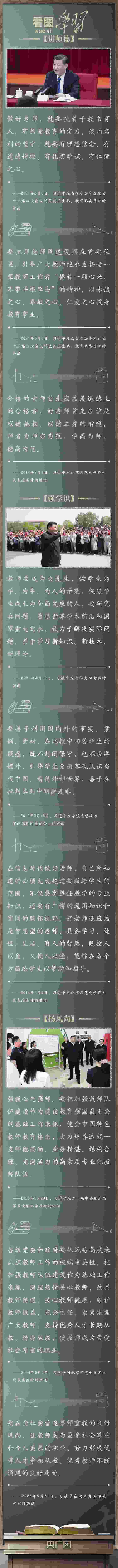 教育大計(jì),教師為本。黨的十八大以來,以習(xí)近平同志為核心的黨中央堅(jiān)持把教育擺在優(yōu)先發(fā)展的戰(zhàn)略位置,推動新時(shí)代教育事業(yè)取得歷史性成就、發(fā)生格局性變化。習(xí)近平總書記緊扣“培養(yǎng)什么人、怎樣培養(yǎng)人、為誰培養(yǎng)人”這一教育的根本問題,對建設(shè)新時(shí)代高素質(zhì)專業(yè)化教師隊(duì)伍作出一系列重要指示,激勵廣大教師立德修身、敬業(yè)立學(xué),強(qiáng)調(diào)要在全黨全社會弘揚(yáng)尊師重教的社會風(fēng)尚。在第四十個教師節(jié)到來之際,讓我們一起牢記并踐行總書記的殷殷囑托!