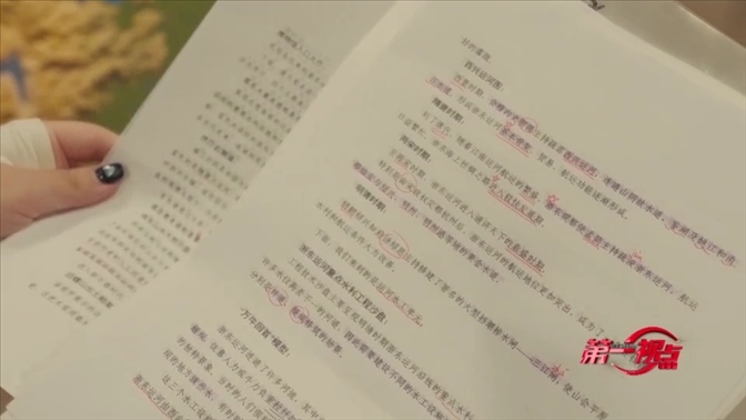 這是安珉紓查閱上千頁資料后寫成的講解稿。每個(gè)段落,每個(gè)句子,都用不同顏色和符號,標(biāo)注出密密麻麻的重點(diǎn)。