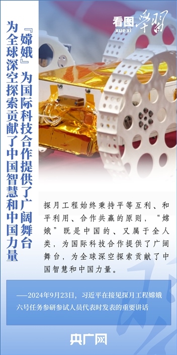 中國(guó)探月工程成果凝結(jié)著我國(guó)幾代航天人的智慧和心血。9月23日,習(xí)近平總書記接見探月工程嫦娥六號(hào)任務(wù)參研參試人員代表并發(fā)表重要講話??倳浉叨瓤隙ㄦ隙鹆?hào)任務(wù)成功的重要意義,以及探月工程為我國(guó)航天事業(yè)發(fā)展、為人類探索宇宙空間作出的重大貢獻(xiàn),勉勵(lì)航天戰(zhàn)線工作者再接再厲、乘勢(shì)而上,為建設(shè)航天強(qiáng)國(guó)再立新功。一起來學(xué)習(xí)!