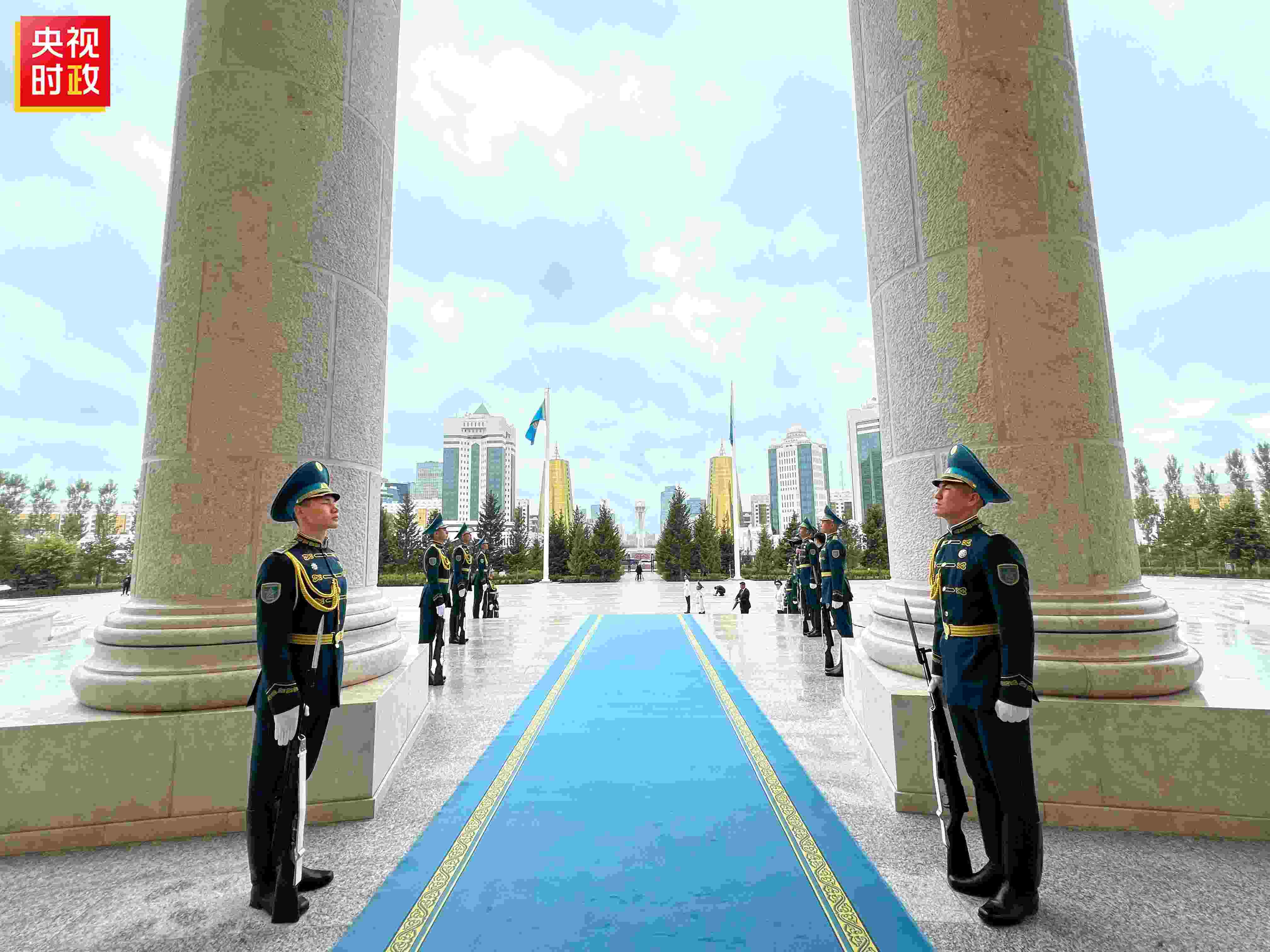 當(dāng)?shù)貢r(shí)間7月3日上午,國(guó)家主席習(xí)近平乘專車抵達(dá)總統(tǒng)府,托卡耶夫總統(tǒng)在下車處熱情迎接。