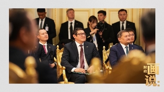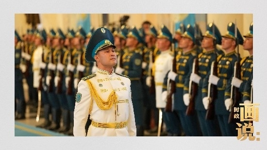 當(dāng)?shù)貢r間3日,國家主席習(xí)近平在阿斯塔納出席哈薩克斯坦總統(tǒng)托卡耶夫在總統(tǒng)府舉行的歡迎儀式。習(xí)近平主席乘車抵達(dá)時,托卡耶夫總統(tǒng)熱情迎接,以最高禮儀歡迎習(xí)近平主席對哈薩克斯坦進(jìn)行國事訪問。