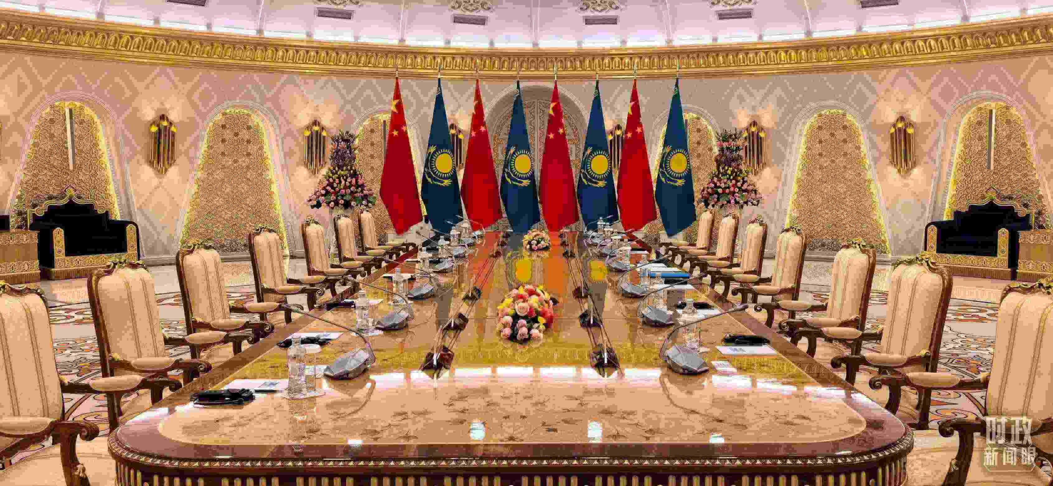 △中哈元首小范圍會談開始前的現場。(總臺央視記者劉岳拍攝)