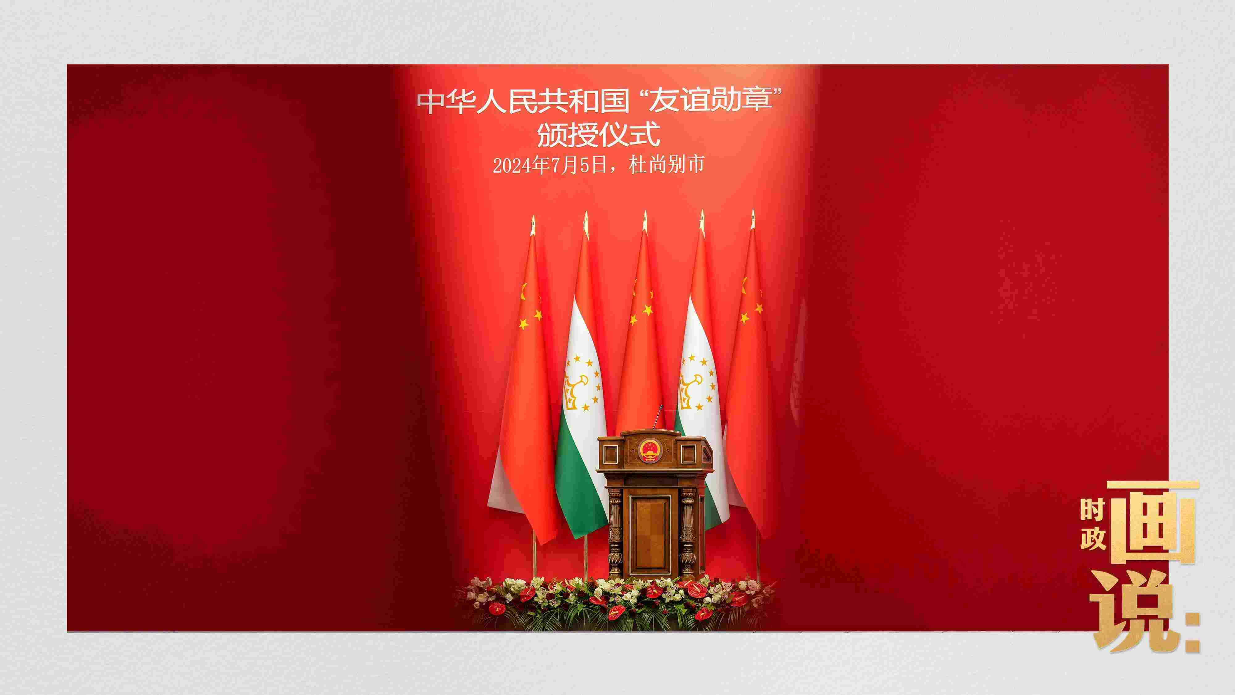 當(dāng)?shù)貢r(shí)間7月5日下午,國(guó)家主席習(xí)近平在杜尚別總統(tǒng)府向塔吉克斯坦總統(tǒng)拉赫蒙頒授“友誼勛章”。這是中國(guó)首次在境外頒授“友誼勛章”,是為表達(dá)中國(guó)人民對(duì)拉赫蒙總統(tǒng)和塔吉克斯坦人民友好感情作出的特殊安排。