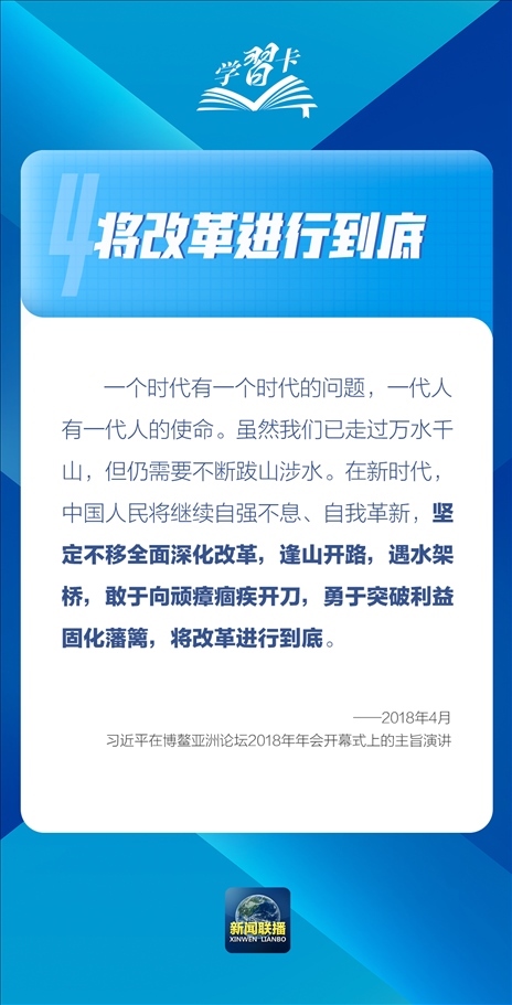 黨的十八大以來,以習(xí)近平同志為核心的黨中央將改革開放作為決定當(dāng)代中國(guó)命運(yùn)的關(guān)鍵一招,決定實(shí)現(xiàn)“兩個(gè)一百年”奮斗目標(biāo)、實(shí)現(xiàn)中華民族偉大復(fù)興的關(guān)鍵一招,堅(jiān)定不移將改革開放繼續(xù)推向前進(jìn)。