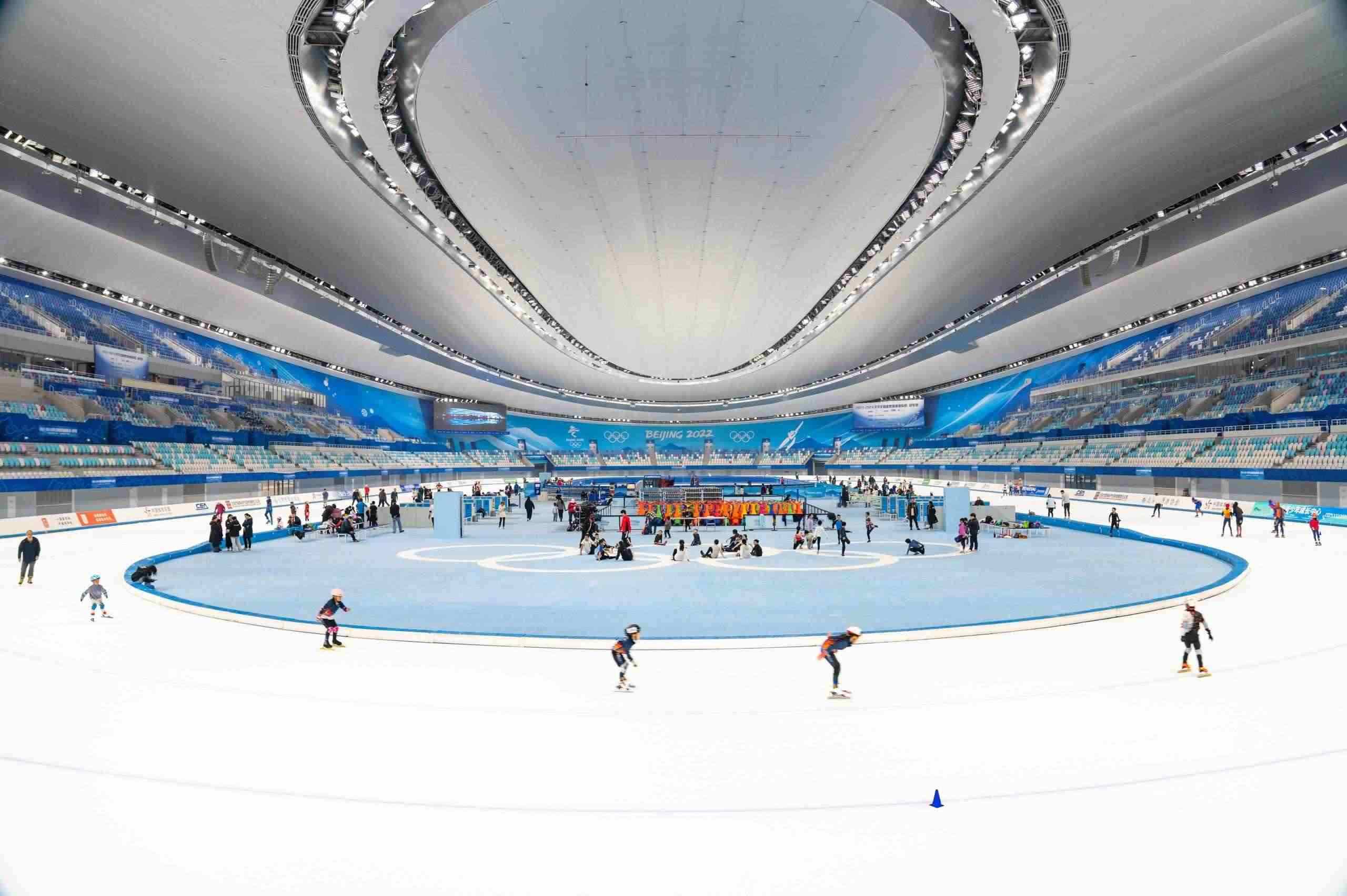 △2024年4月27日,滑冰愛好者和市民在北京國(guó)家速滑館參加滑冰運(yùn)動(dòng)。